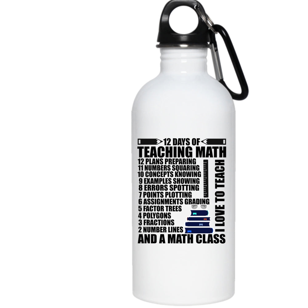 12 Days Of Teaching Math 20 oz Stainless Steel Bottle,I Love To Teach And A Math Class Outdoor Sports Water Bottle