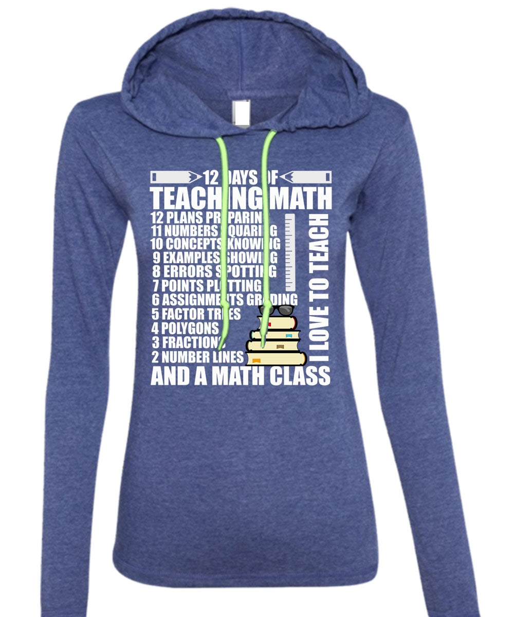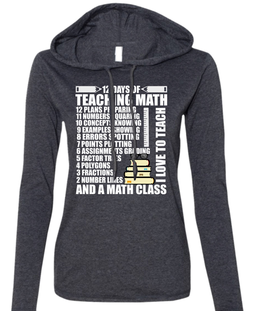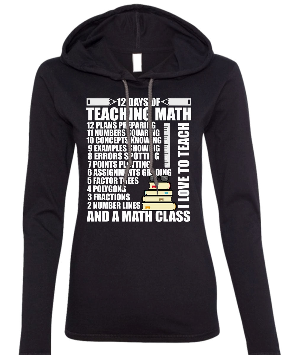 12 Days Of Teaching Math T Shirt, I Love Teach T Shirt (Anvil Ladies Ringspun Hooded)