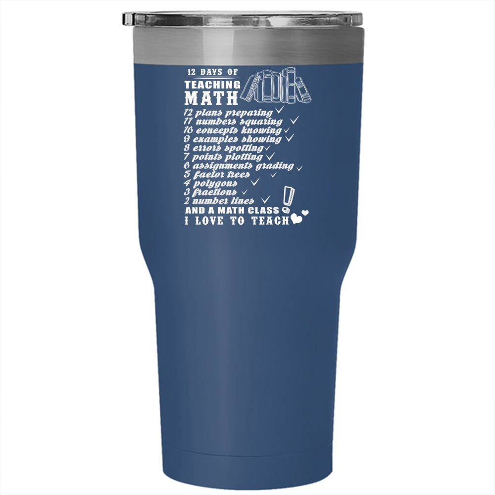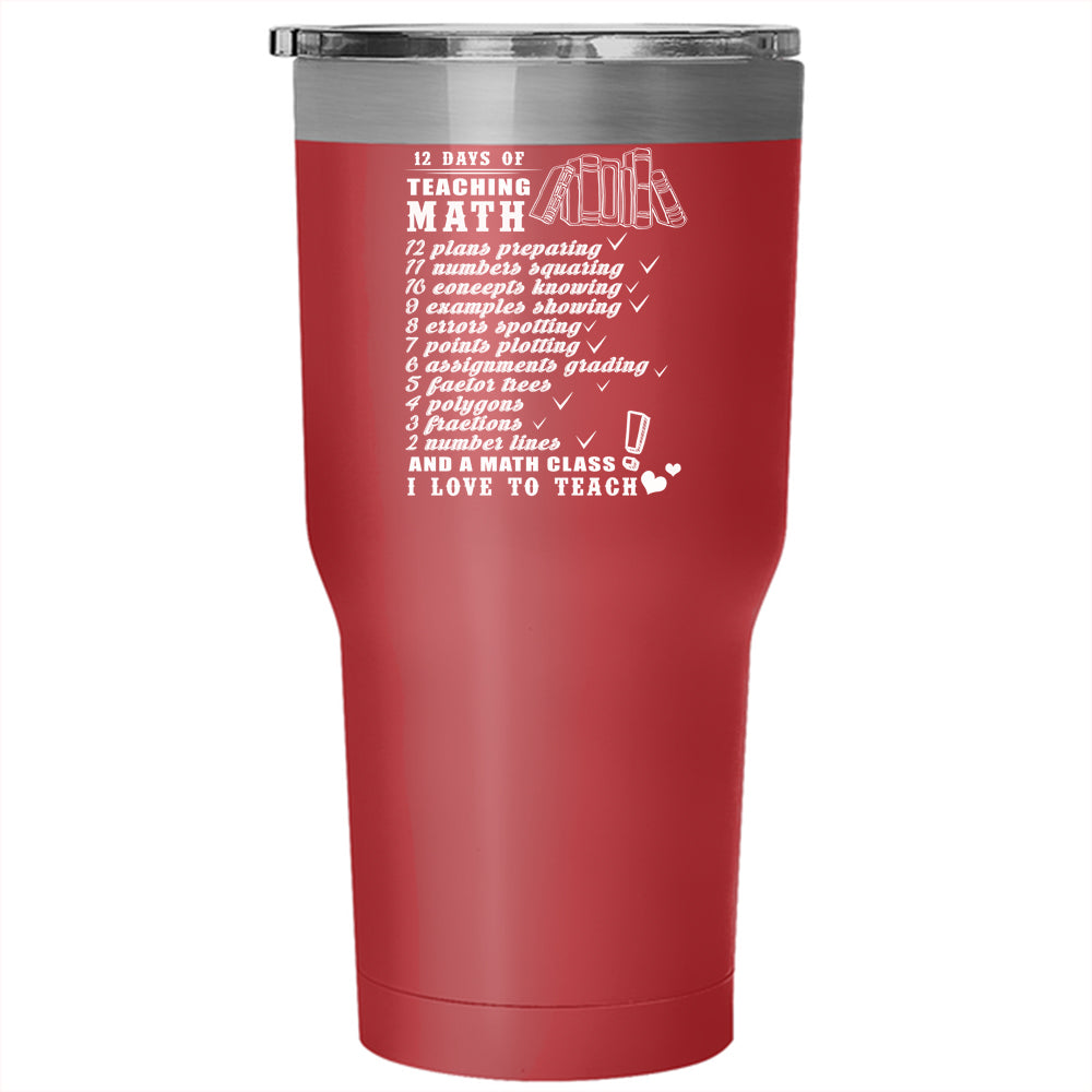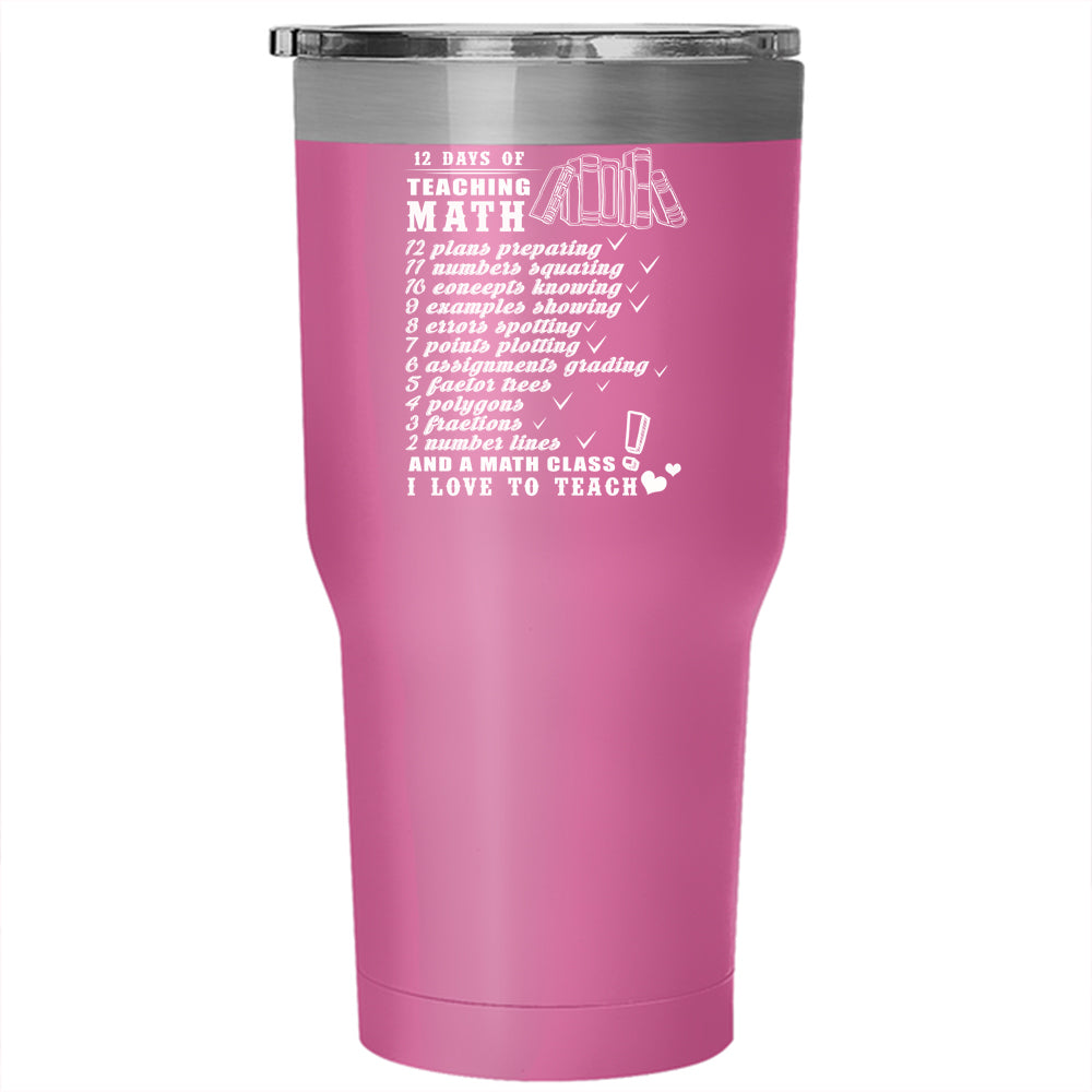 12 Days Of Teaching Math Tumbler 30 oz Stainless Steel, I Love To Teach Travel Mug
