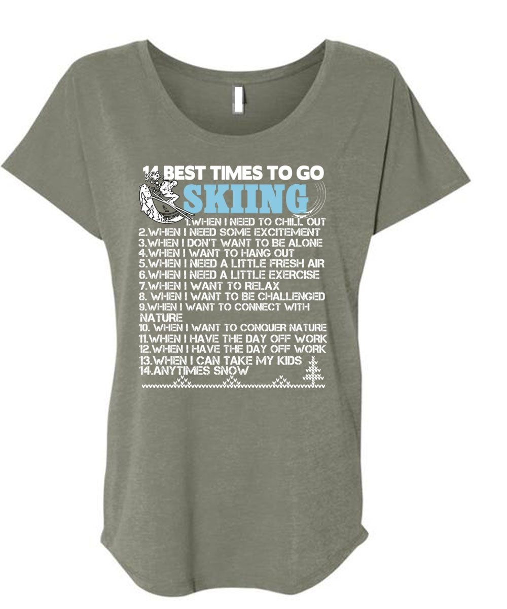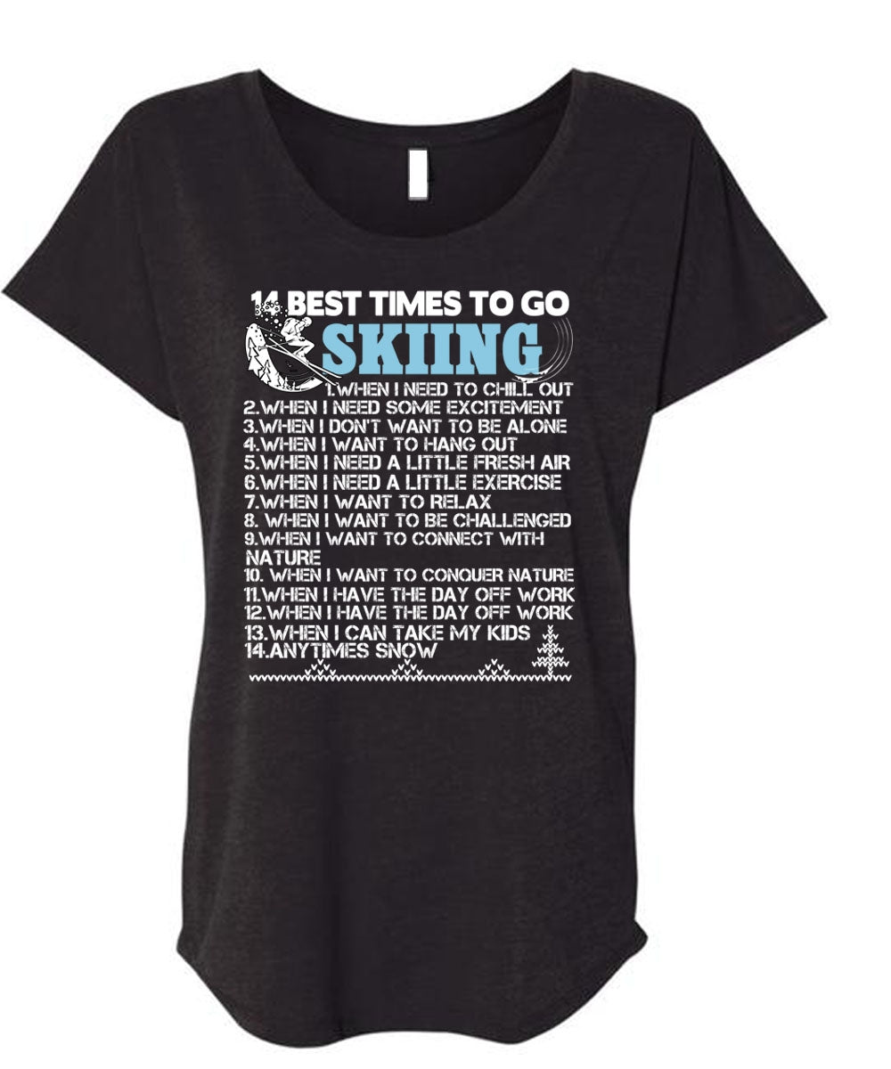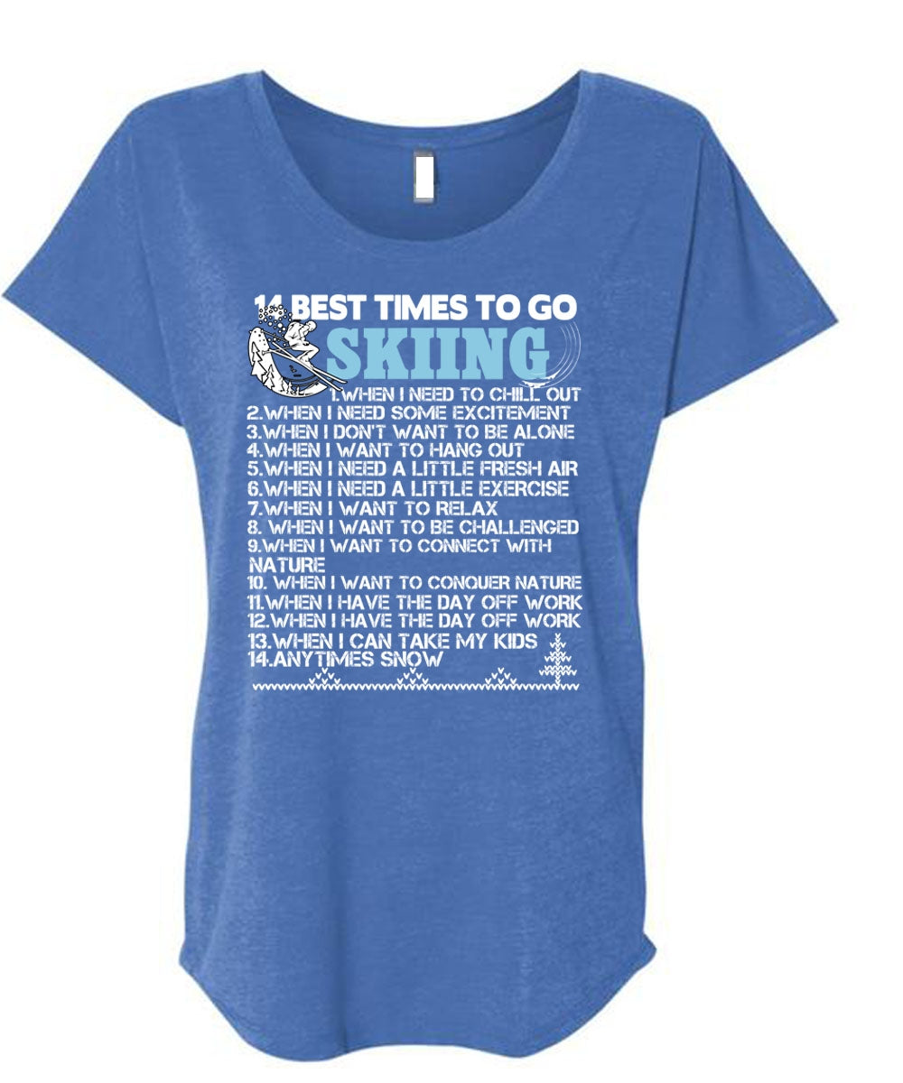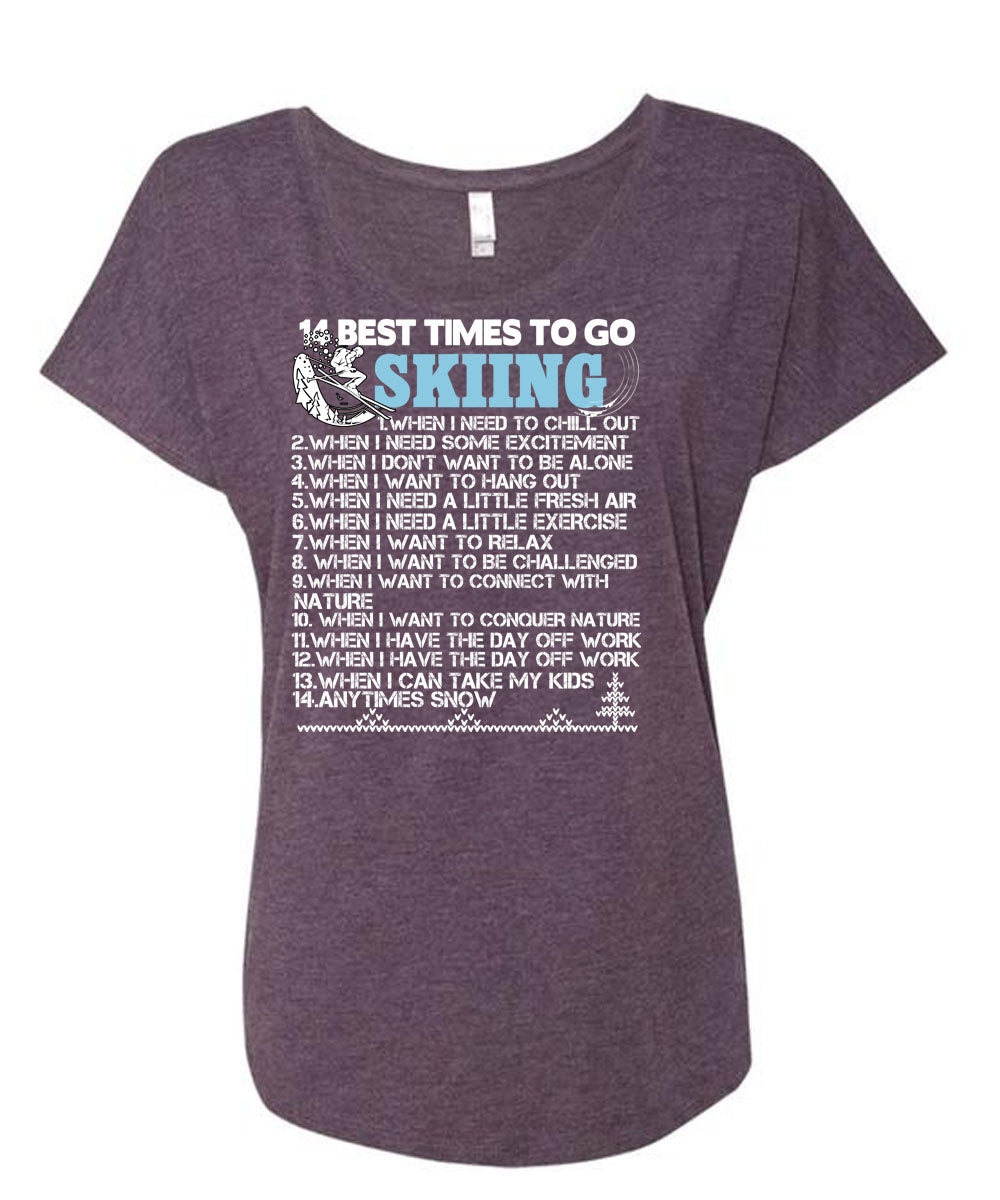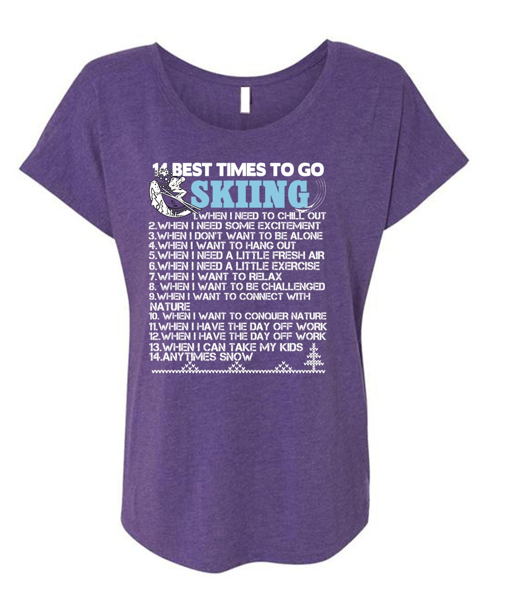 14 Best Times To Go Skiing T Shirt, Being A Skier T Shirt, Cool Shirt (Ladies' Triblend Dolman Sleeve)