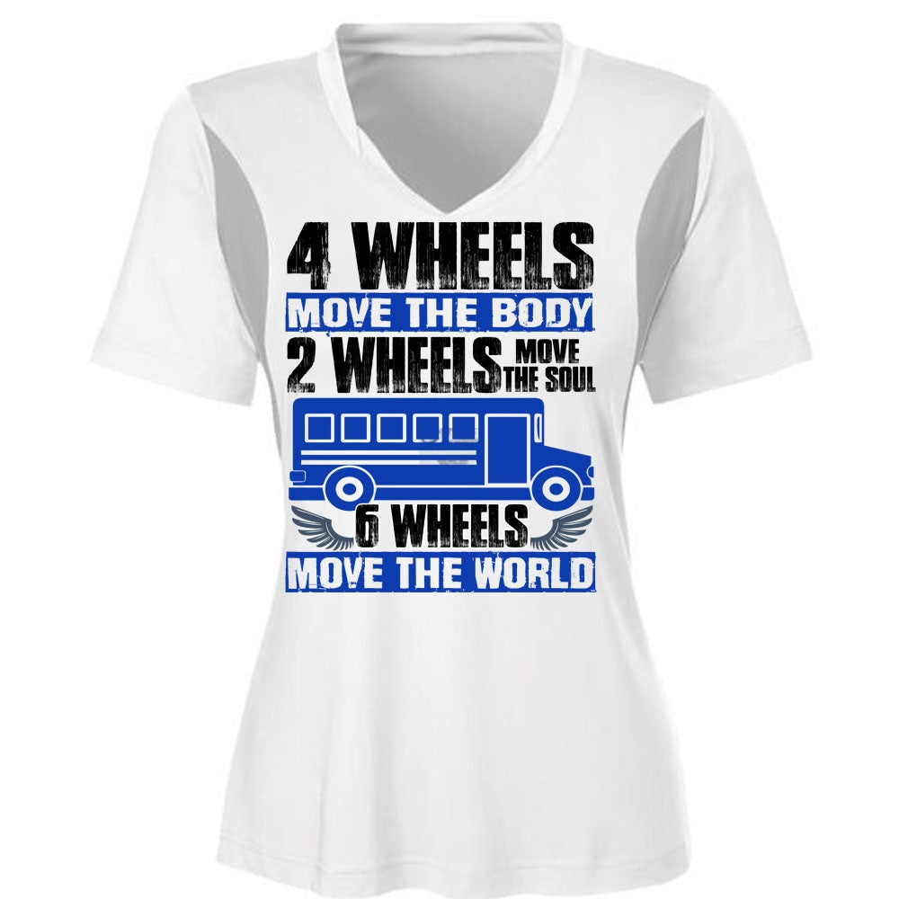 4 Wheels Move The Body T Shirt, 2 Wheels Move The Soul T Shirt, Cool Shirt (Ladies LS Heather V-Neck)