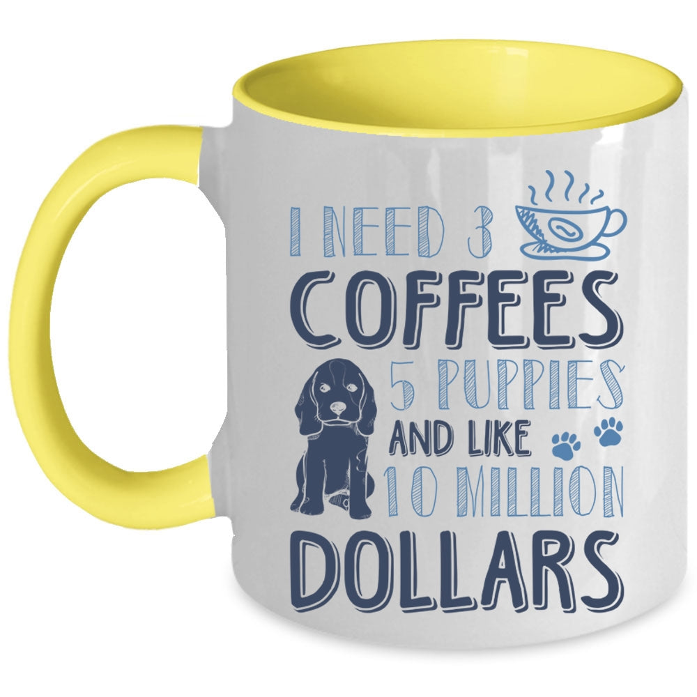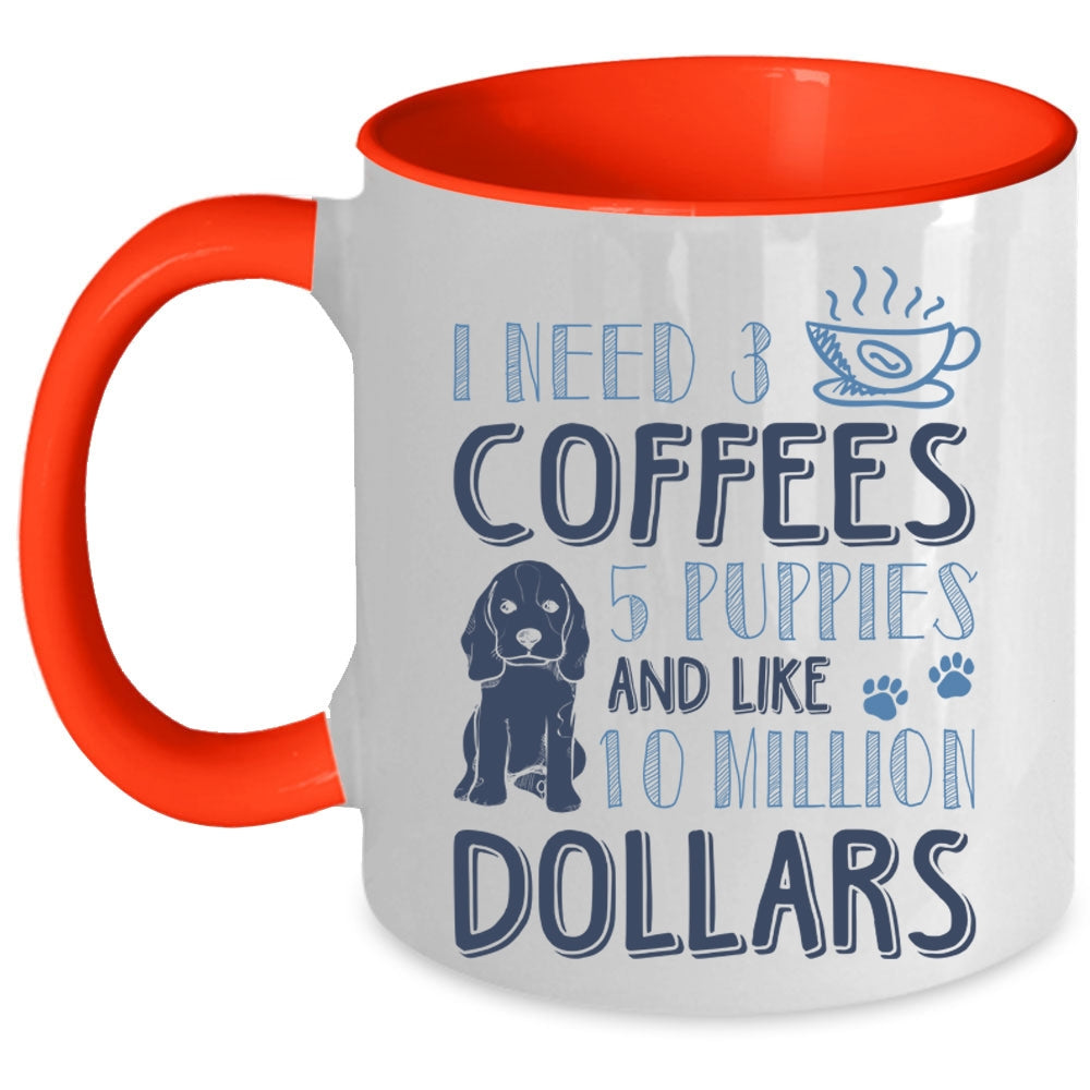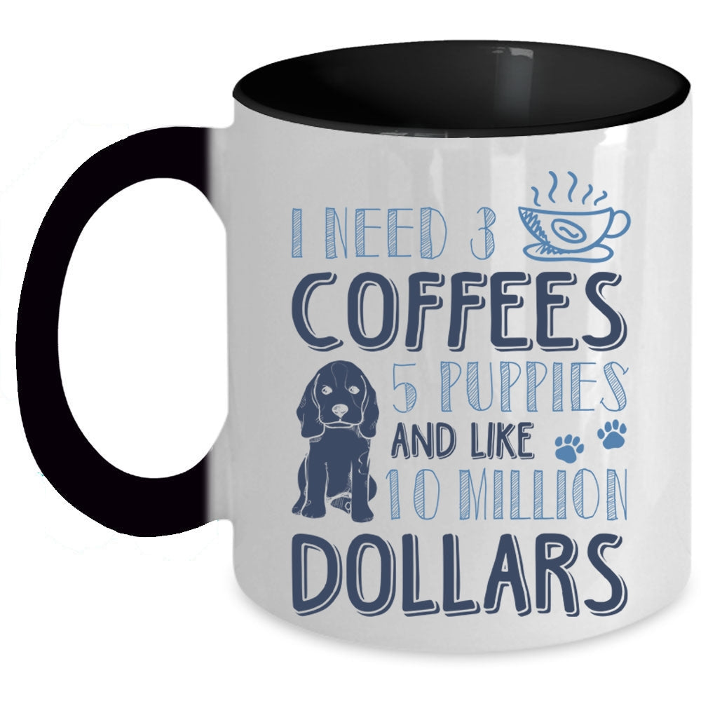 5 Puppies And Like 10 Million Dollars Coffee Mug, I Need 3 Coffees Accent Mug