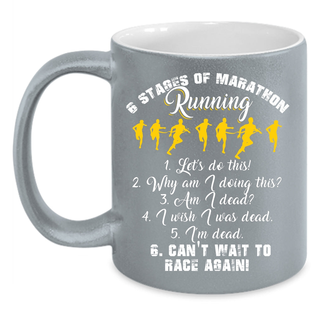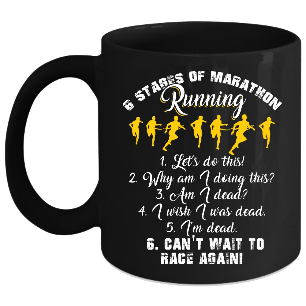 6 Stages Of Marathon Running Coffee Mug, Funny Marathon Runner Coffee Cup