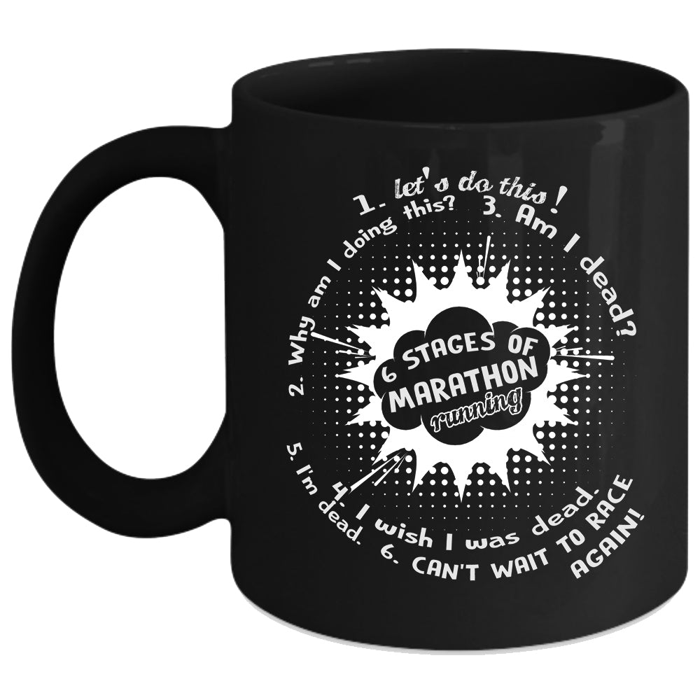 6 Stages Of Marathon Running Coffee Mug, I Love Running Coffee Cup