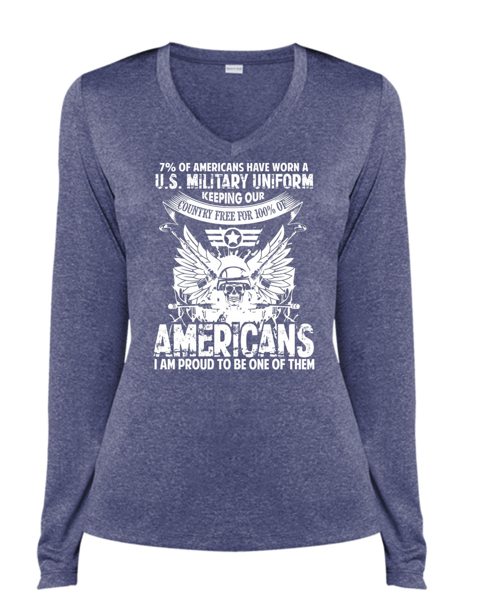 7% Of Americans Have Worn A US Military Uniform T Shirt, I Am Proud To Be One Of Them T Shirt, Cool Shirt (Ladies LS Heather V-Neck)