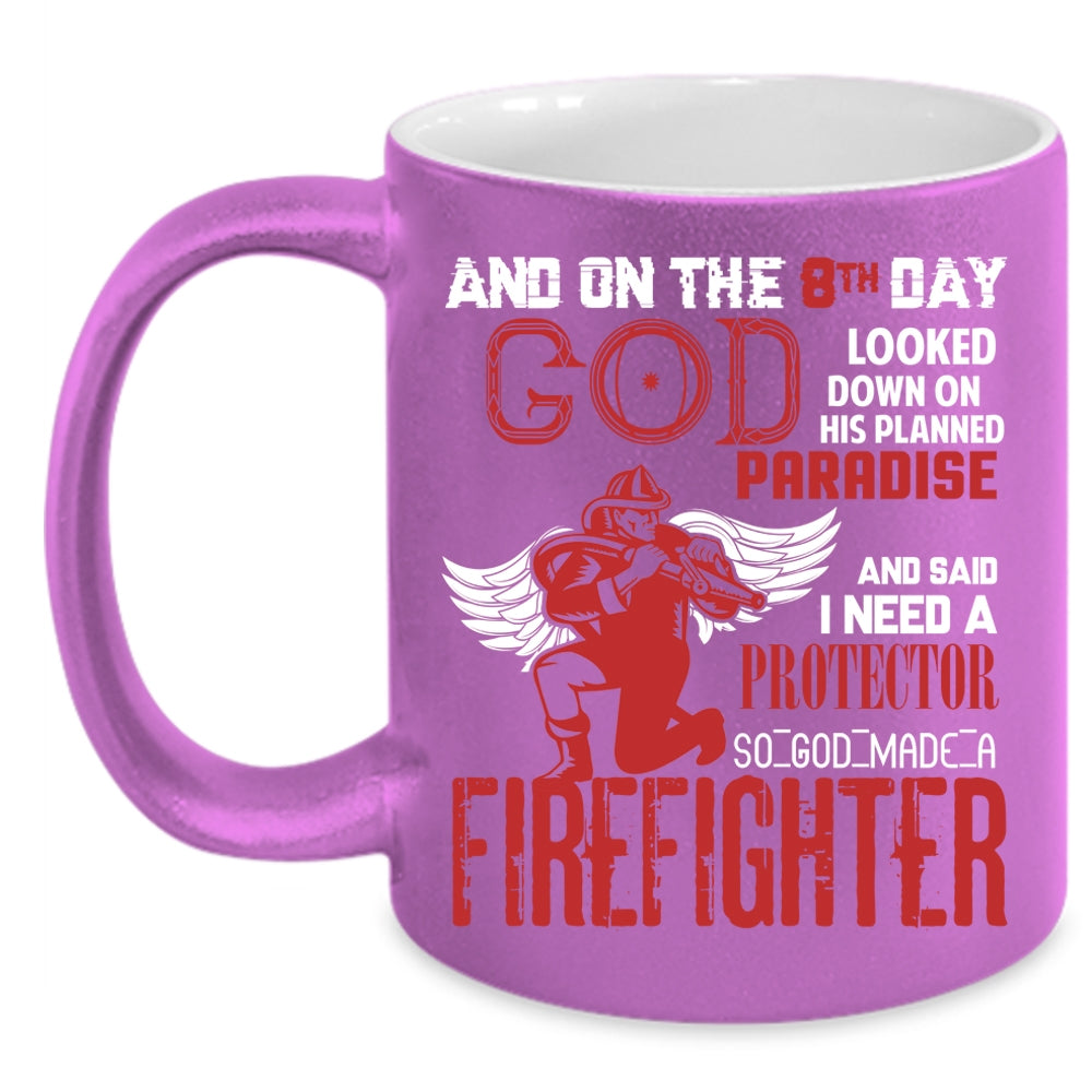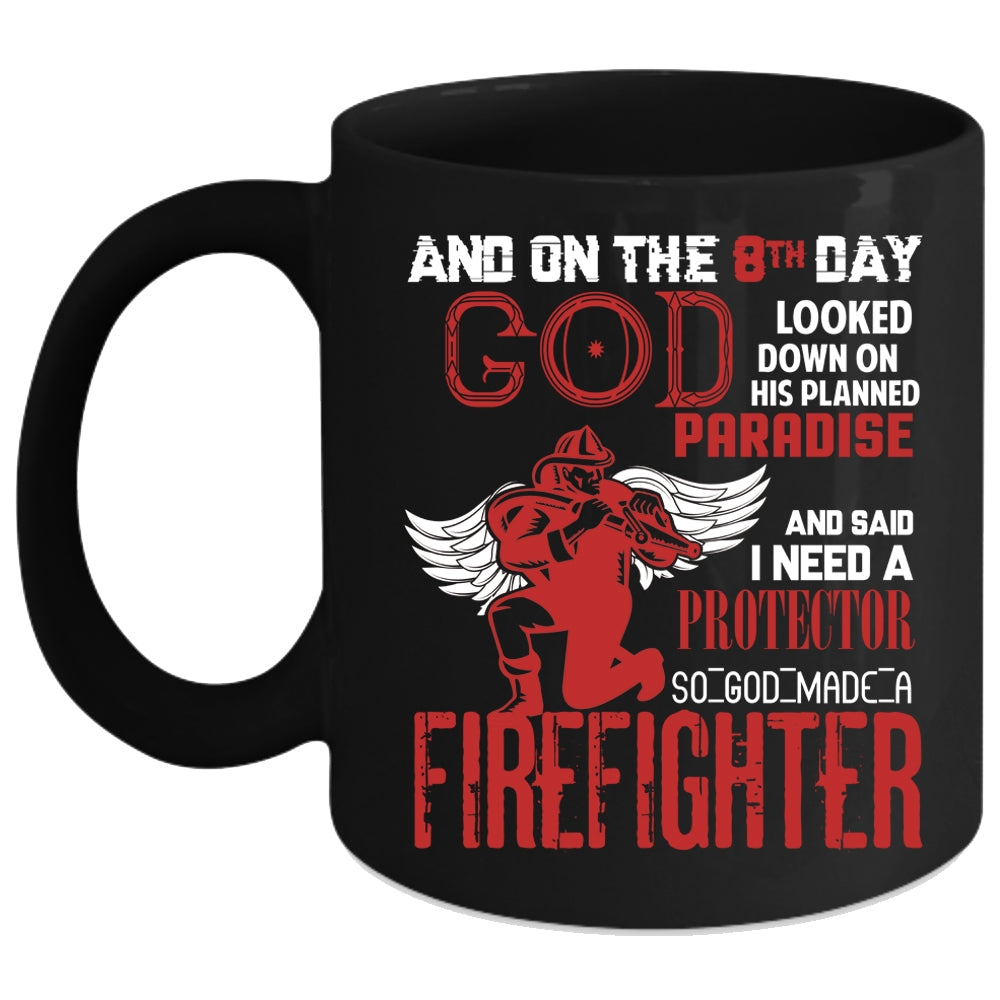 8th Day God Made A Firefighter Coffee Mug, Cute Firefighter Coffee Cup