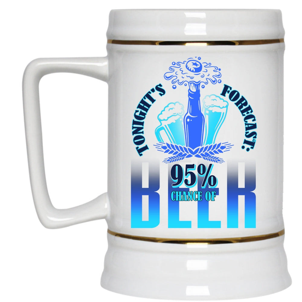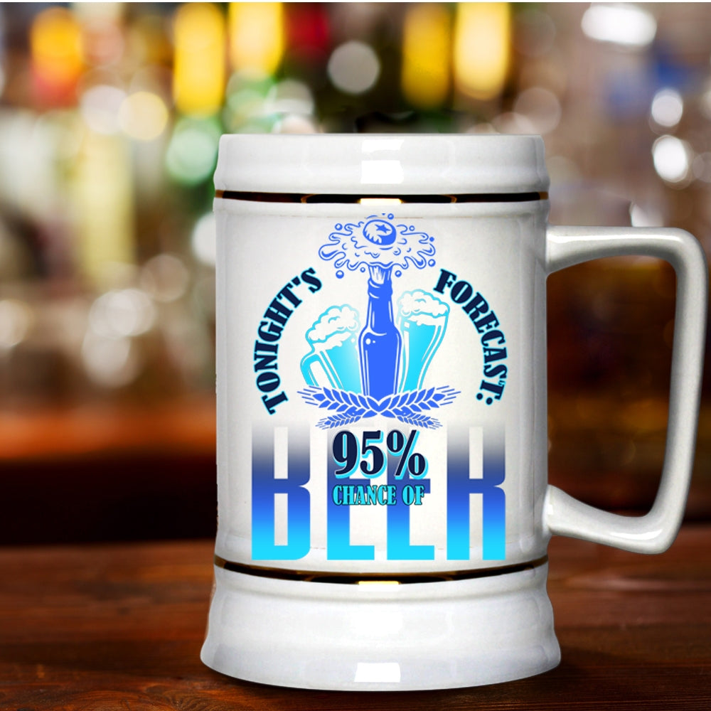 95% Chance Of Beer Beer Stein 22oz, Tonight's Forecast Beer Mug