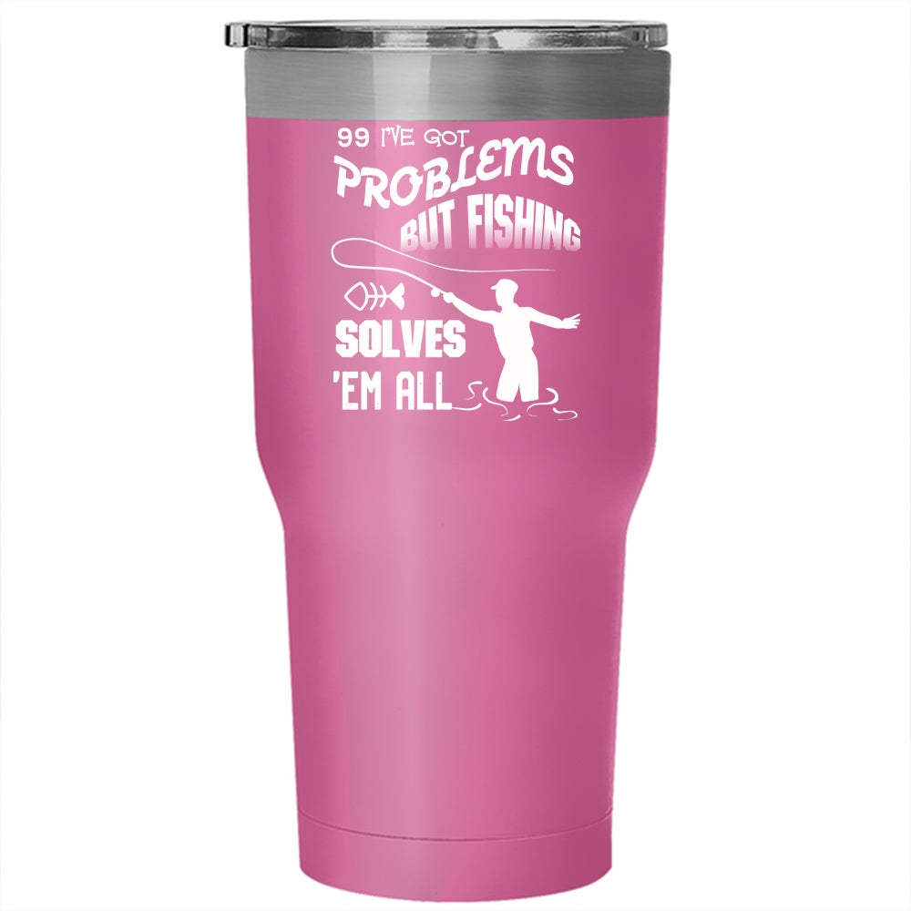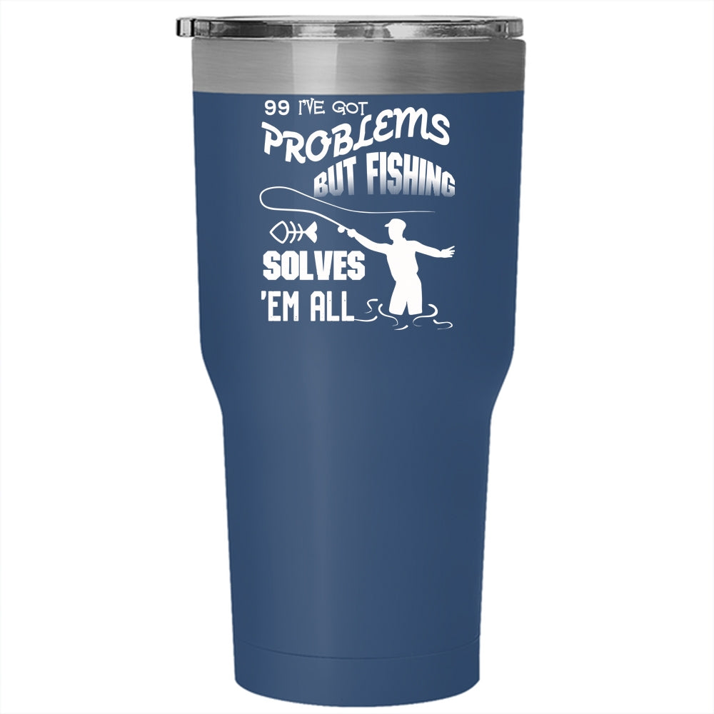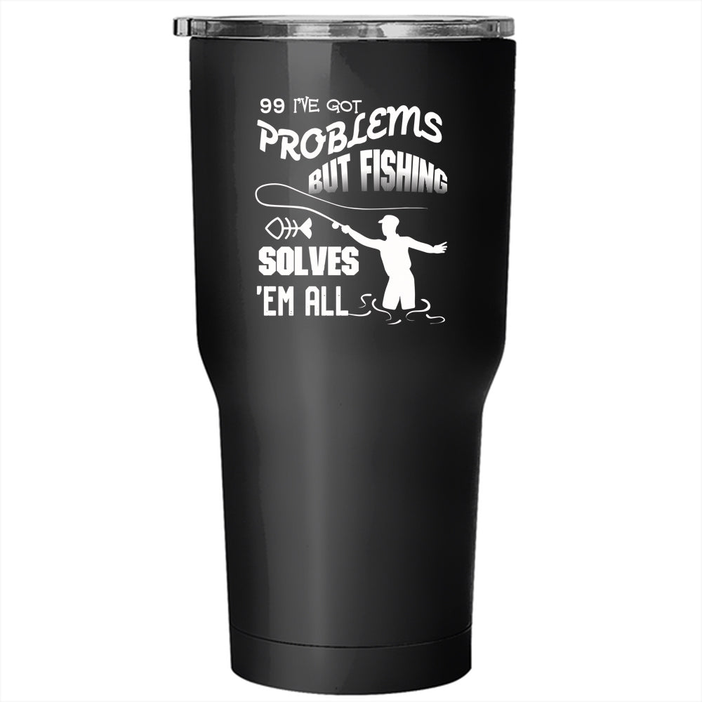 99 I've Got Problems Tumbler 30 oz Stainless Steel, Fishing Solves 'Em All Travel Mug