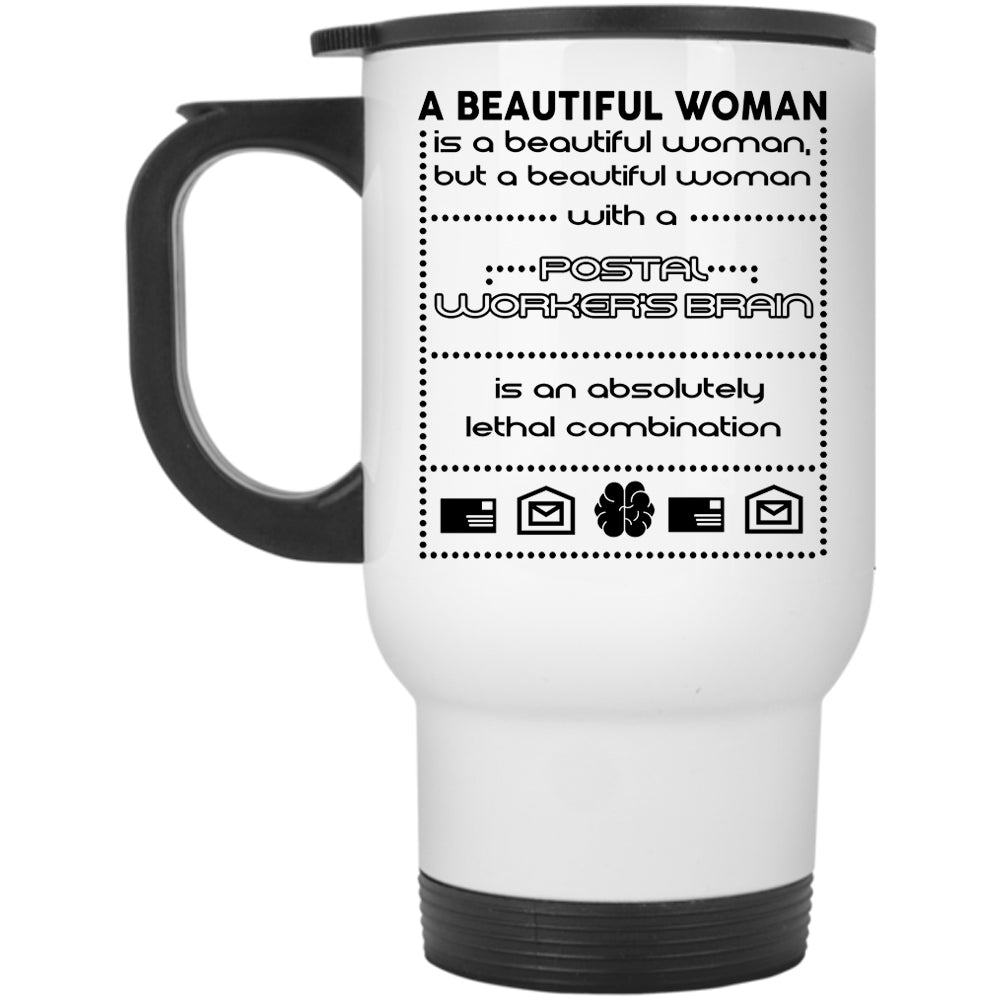 A Beautiful Woman With A Postal Worker's Brain Mug (Travel Mug)