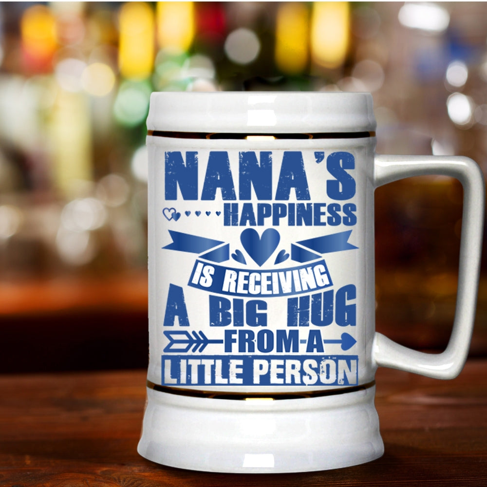A Big Hug From A Little Person Beer Stein 22oz, Nana's Happiness Beer Mug