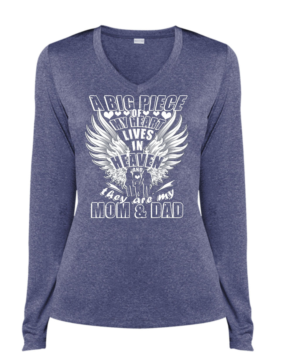 A Big Piece Of My Heart Lives In Heaven T Shirt, They Are My Mom And Dad T Shirt, Cool Shirt (Ladies LS Heather V-Neck)