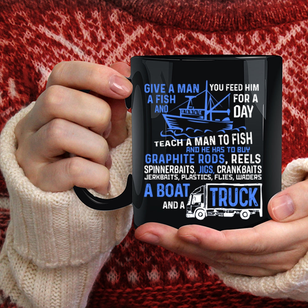 A Boat And A Truck Coffee Mug, Cool Trucker Coffee Cup