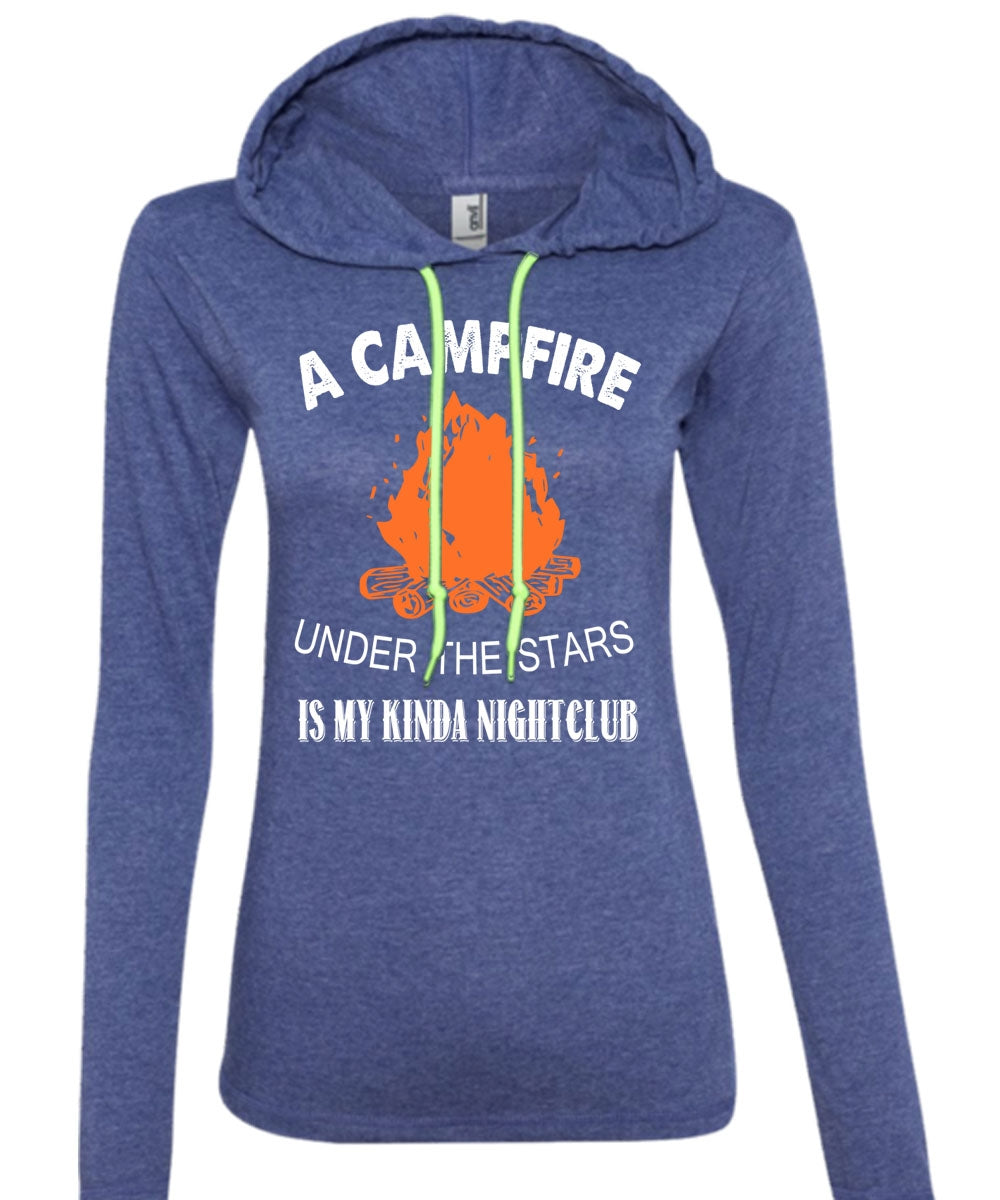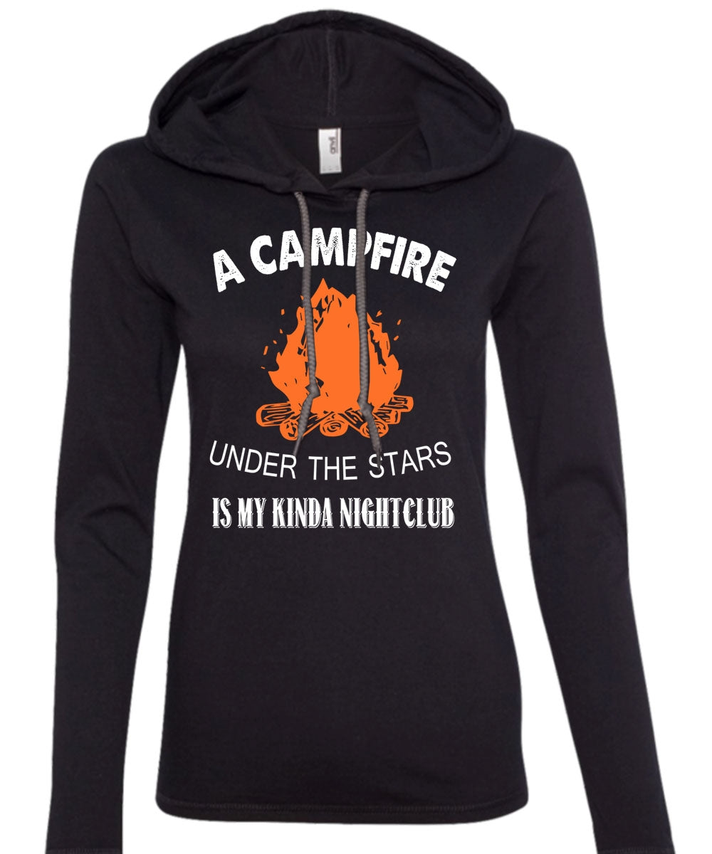 A Campfire Under The Stars T Shirt, My Kinda Night Club Shirt (Anvil Ladies Ringspun Hooded)