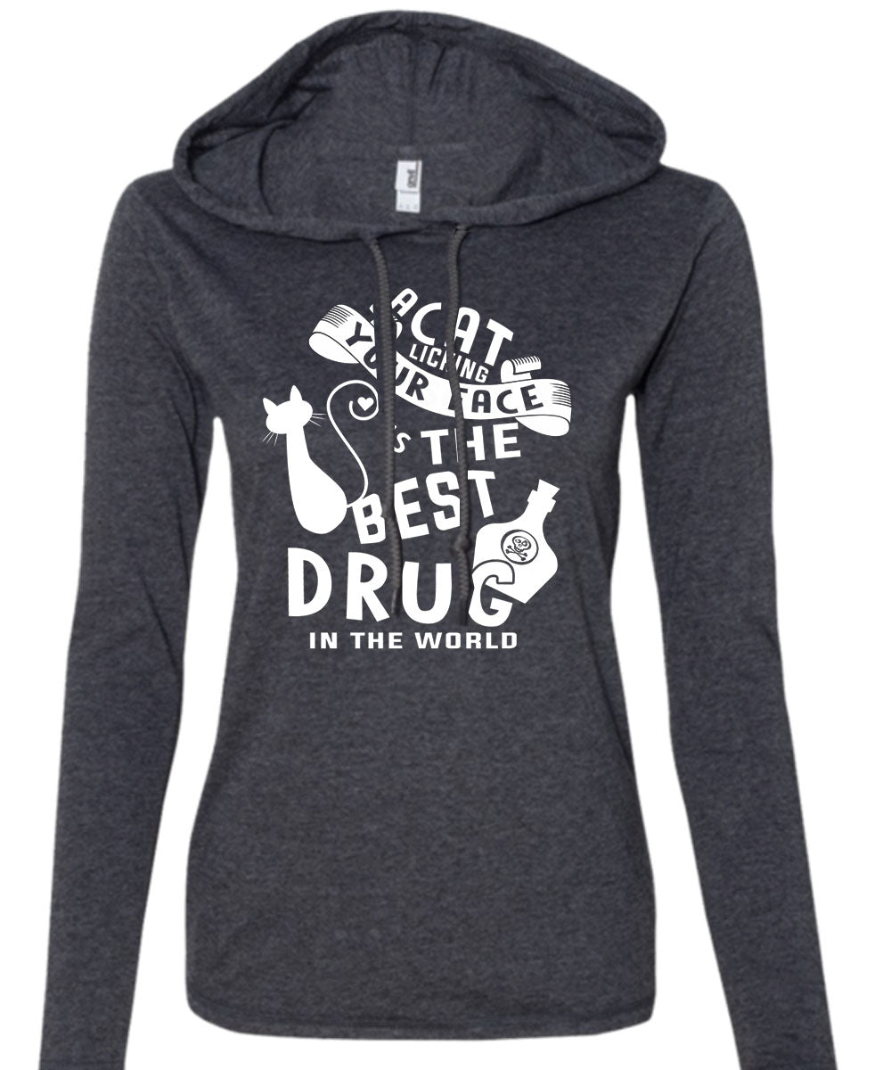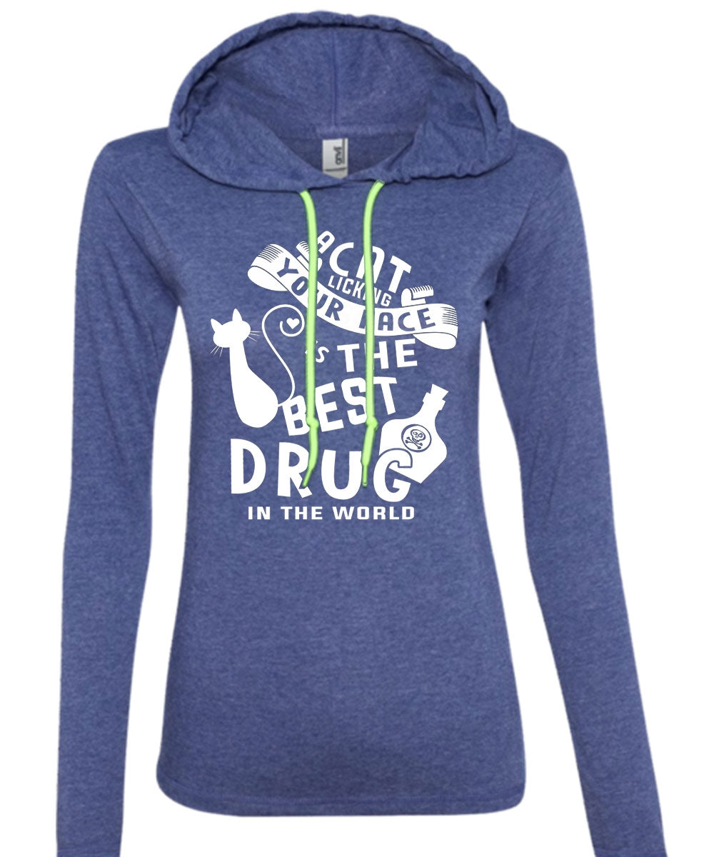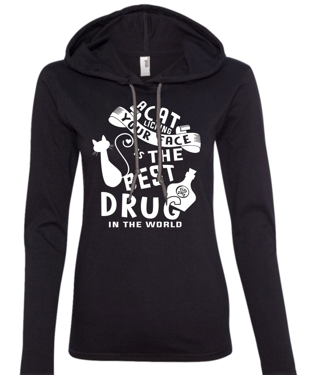 A Cat Licking Your Face Is The Best Drug In The World T Shirt, My Life T Shirt (Anvil Ladies Ringspun Hooded)