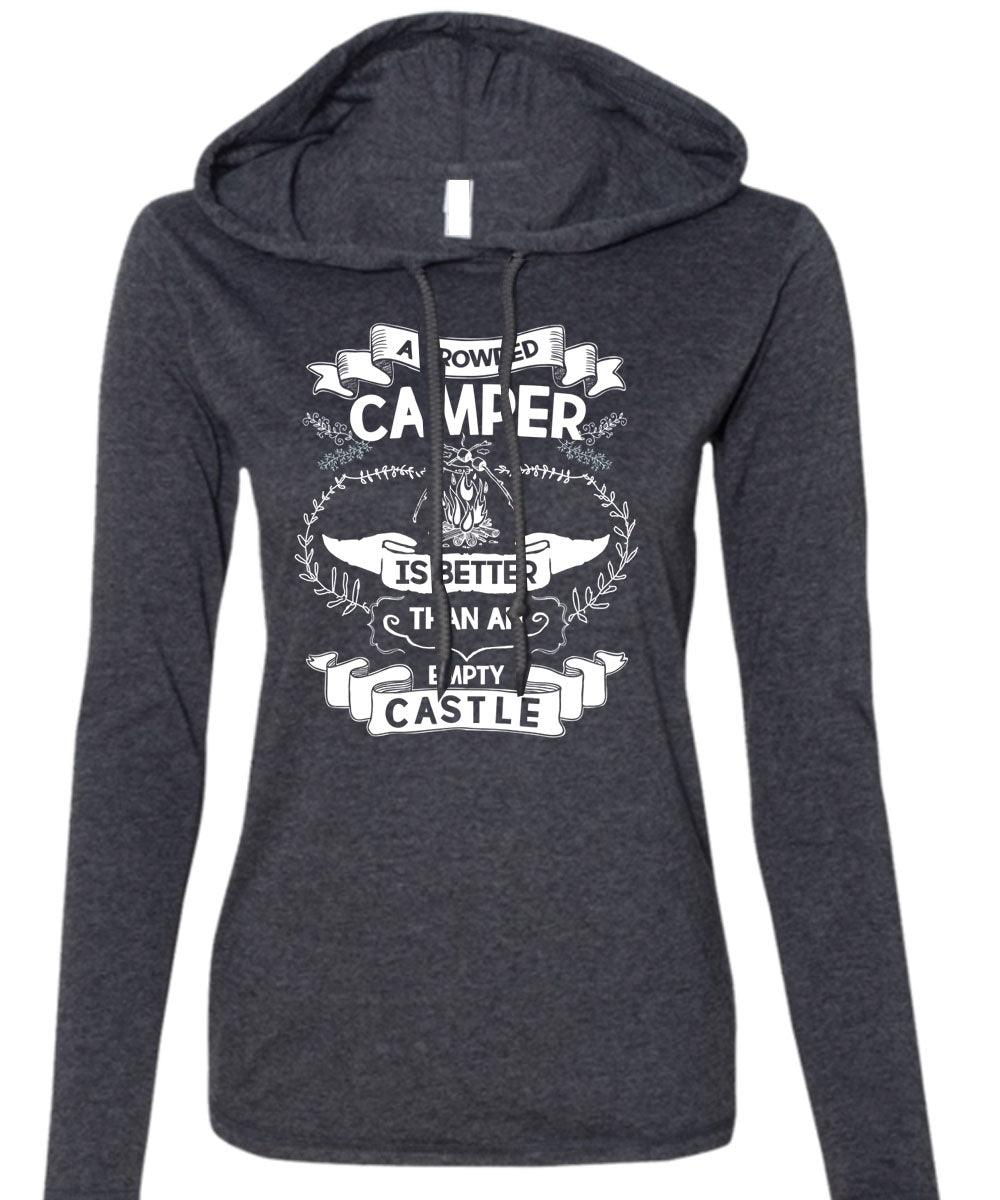 A Crowded Camper Is Better T Shirt, Being A Camper T Shirt (Anvil Ladies Ringspun Hooded)