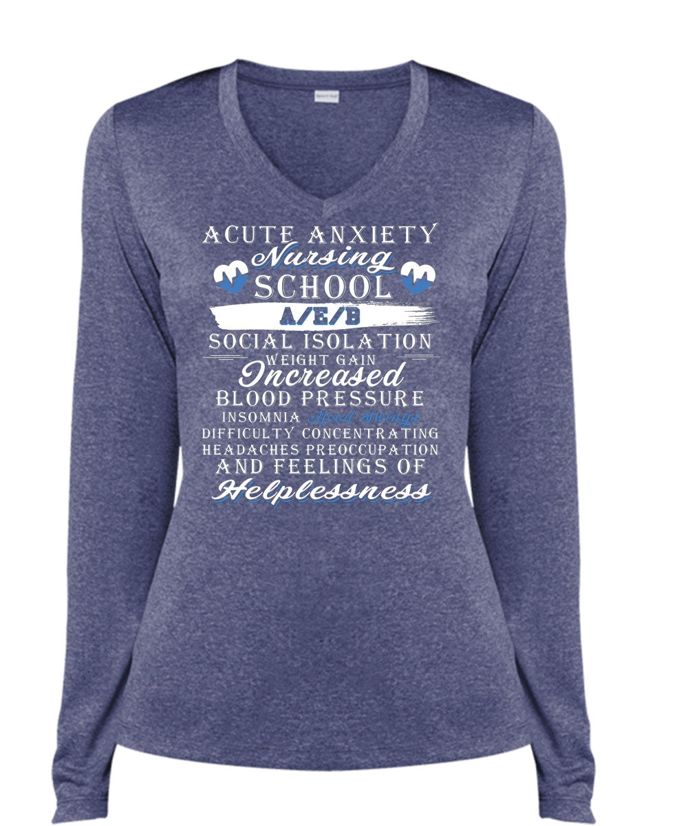 A Cute Anxiety Nursing School T Shirt, Social Isolation Weight Gain T Shirt, Cool Shirt (Ladies LS Heather V-Neck)