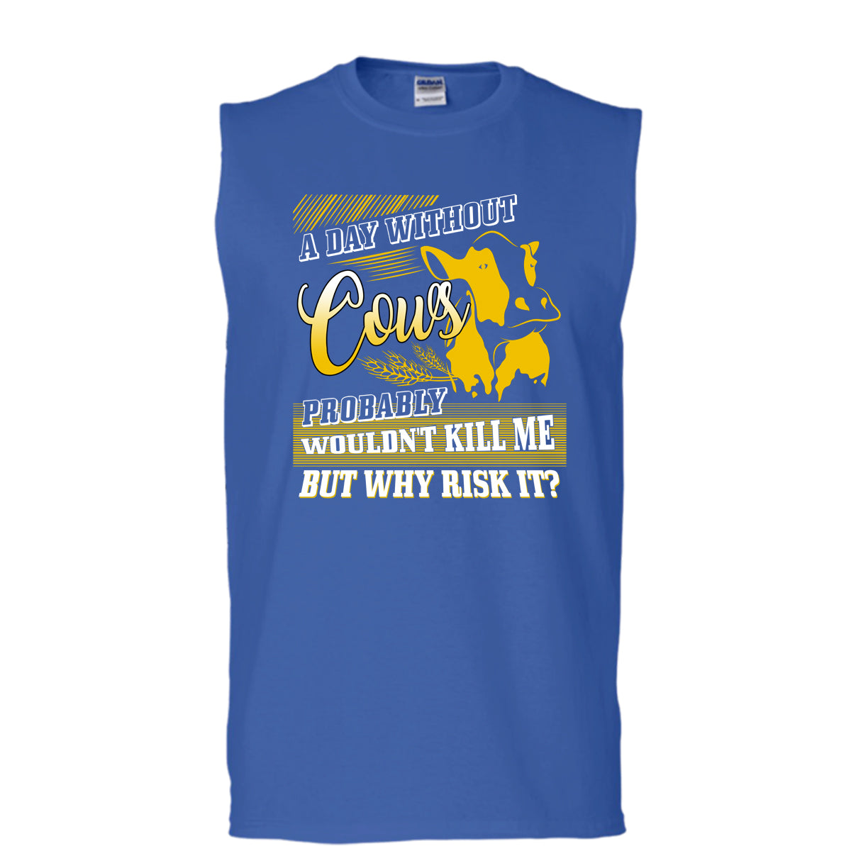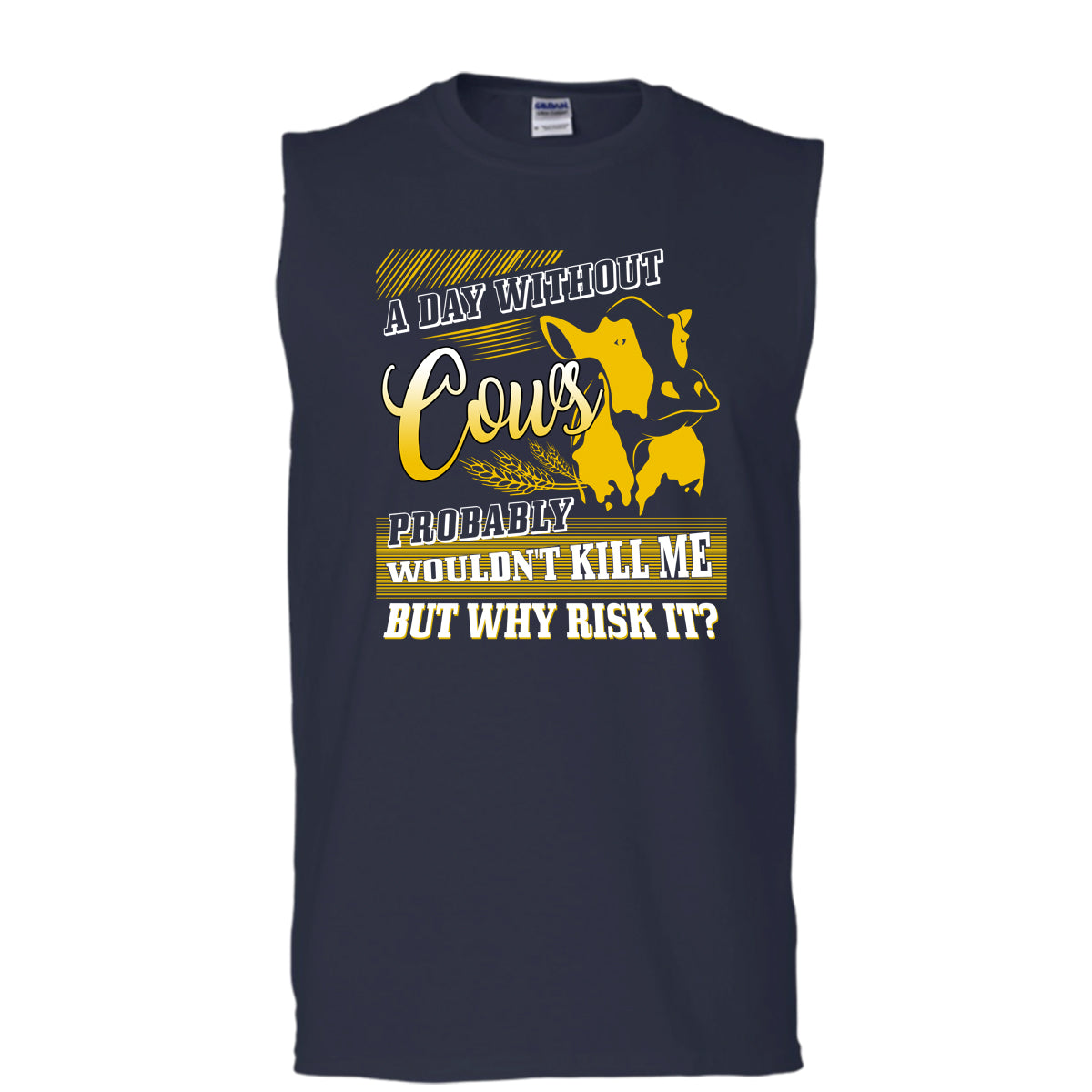 A Day Without Cows T Shirt, Coolest Farmer T Shirt, Cool T Shirt (Men's Cotton Sleeveless)