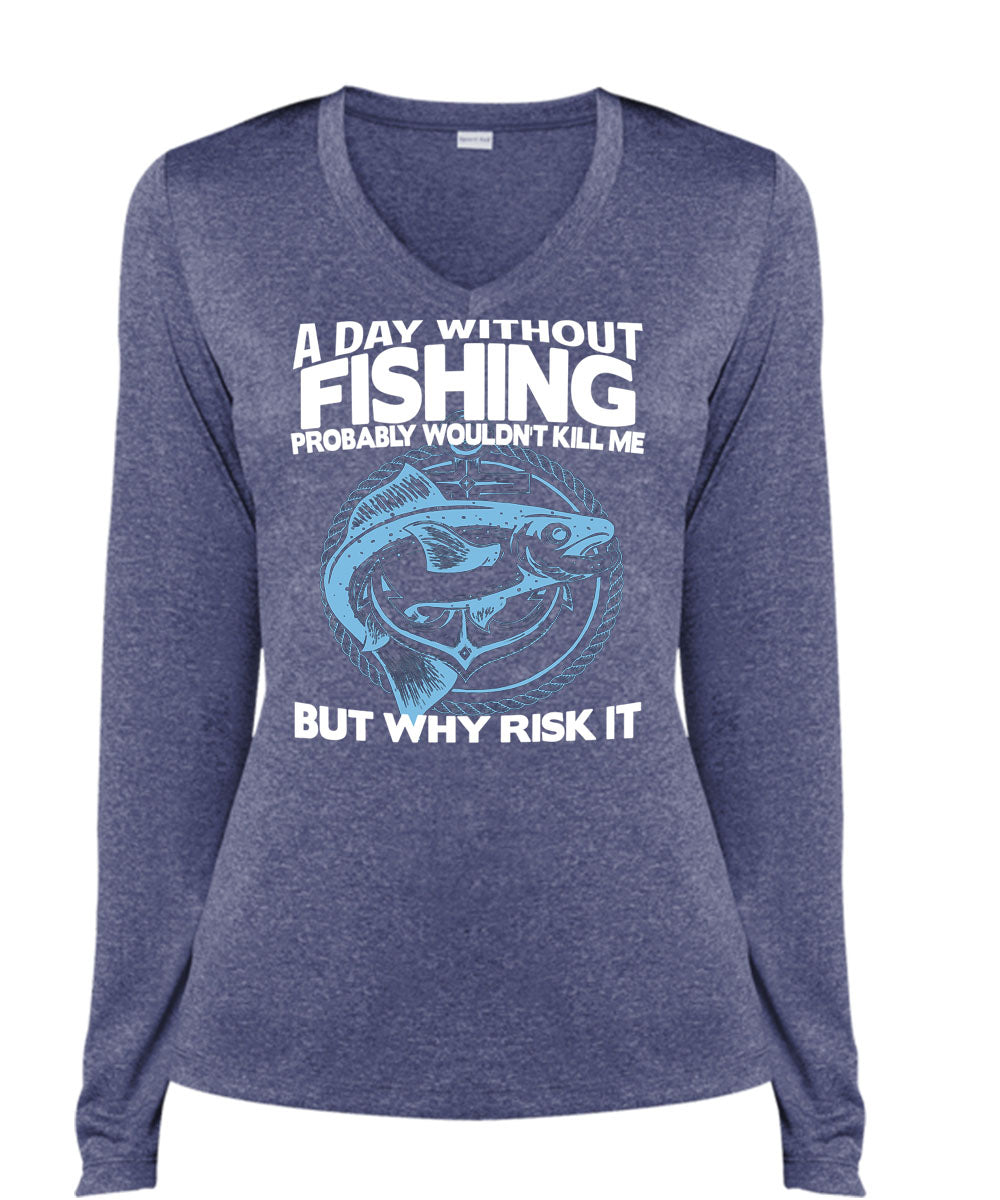 A Day Without Fishing T Shirt, Being A Fisher T Shirt, Cool Shirt (Ladies LS Heather V-Neck)