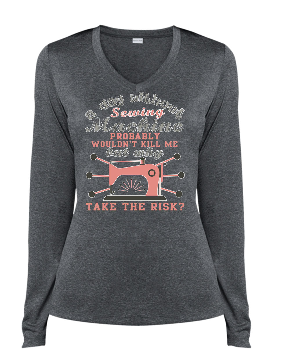 A Day Without Sewing Machine T Shirt, My Favorite T Shirt, Cool Shirt (Ladies LS Heather V-Neck)
