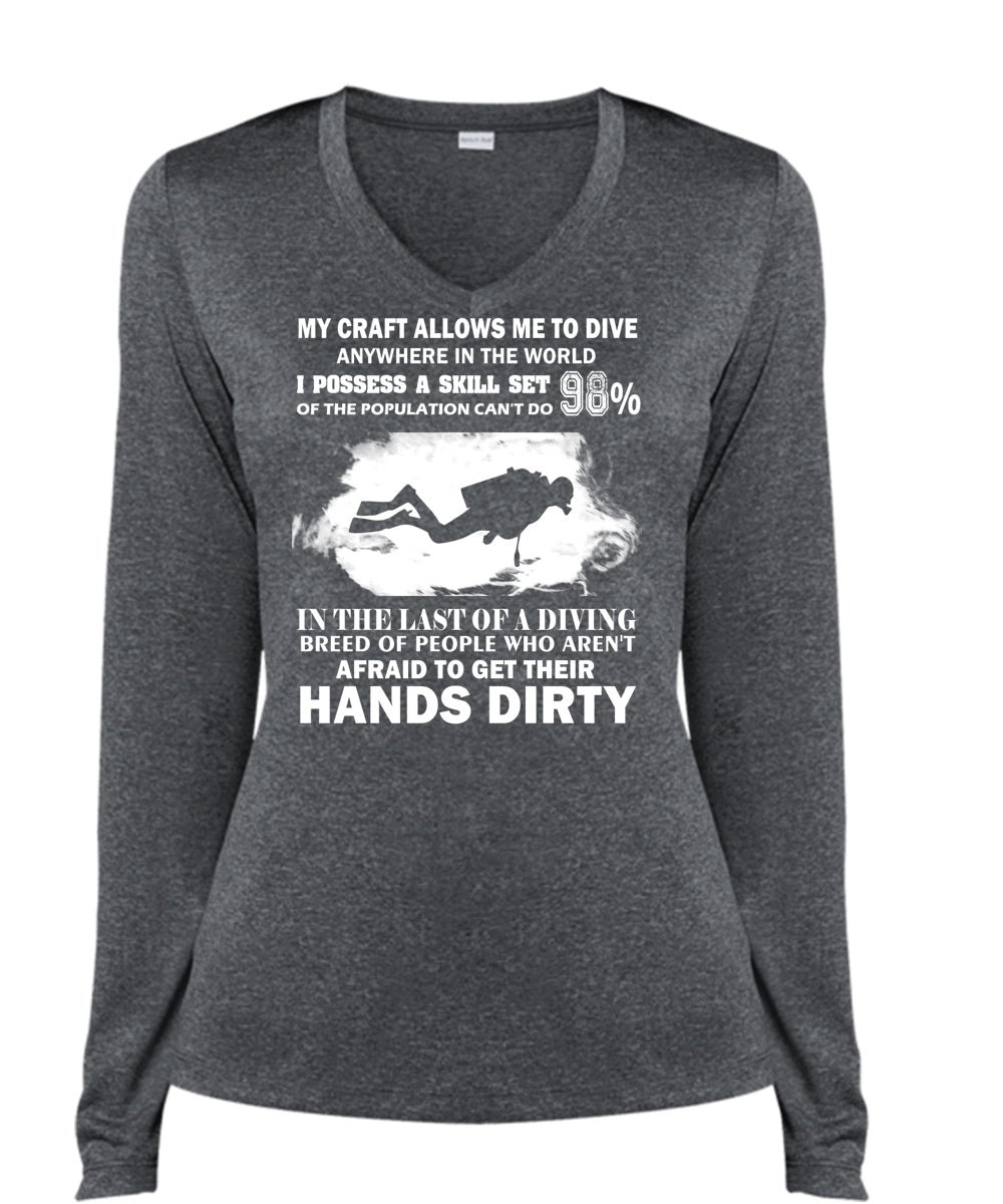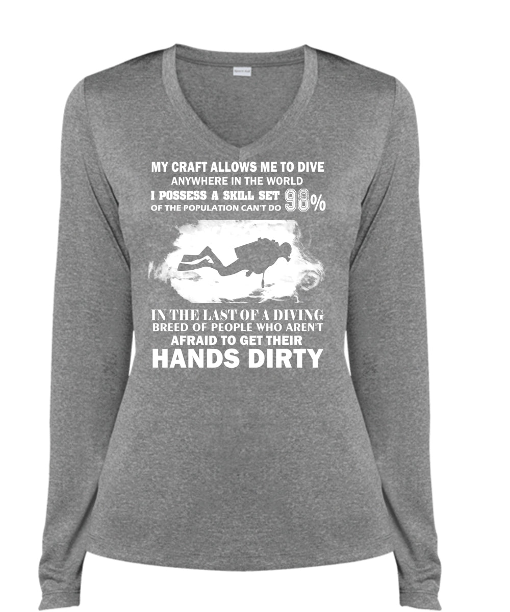 A Diving Breed Of People Who Aren't Afraid To Get Their Hands Dirty T Shirt, Sport T Shirt (Ladies LS Heather V-Neck)