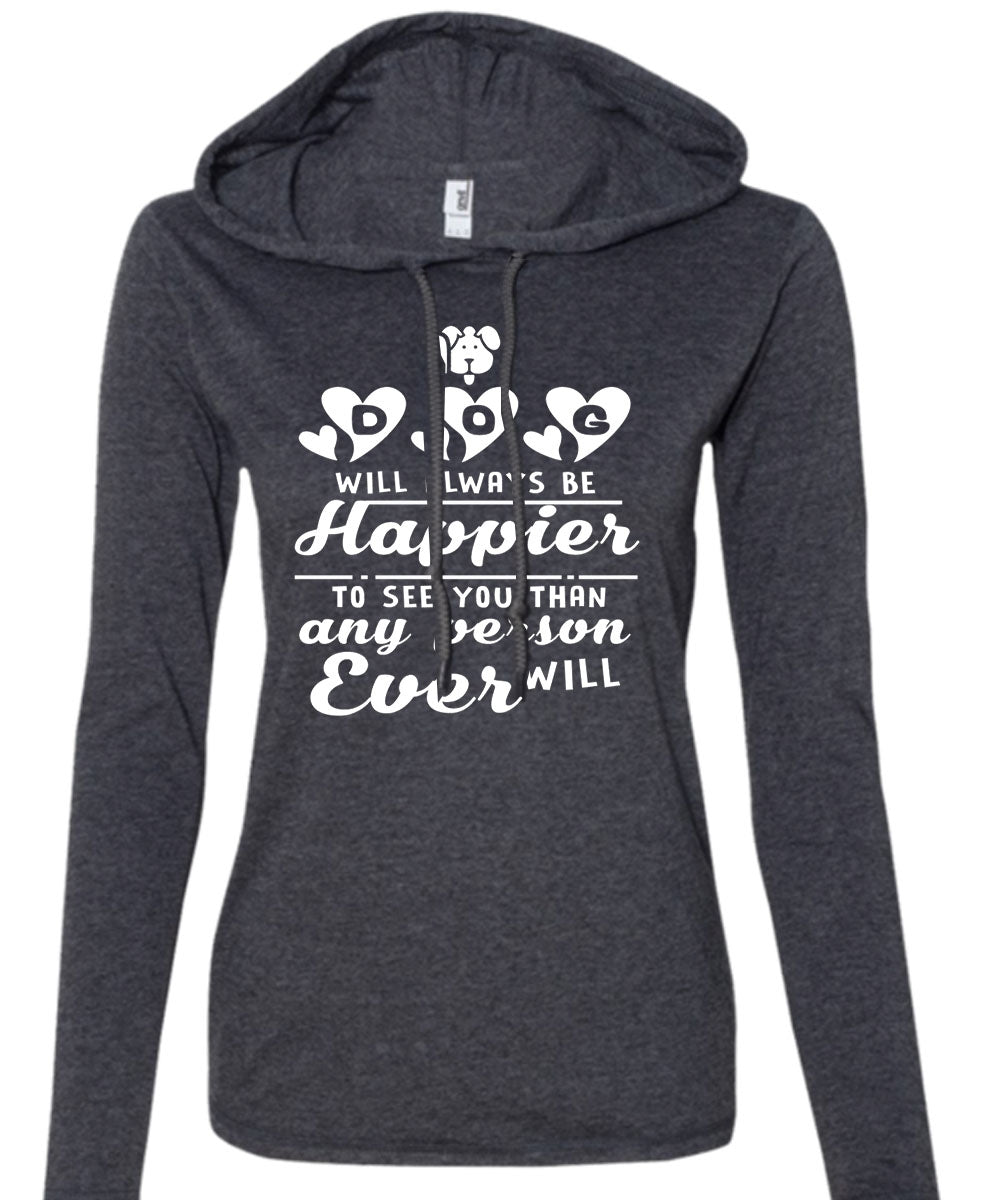 A Dog Will Always Be Happier To See You Than Any Person Will Ever T Shirt (Anvil Ladies Ringspun Hooded)
