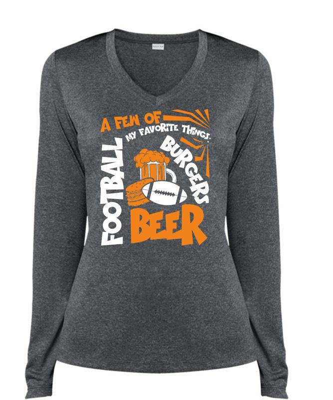 A Few Of My Favorite Things T Shirt, Football And Beer T Shirt, Cool Shirt (Ladies LS Heather V-Neck)