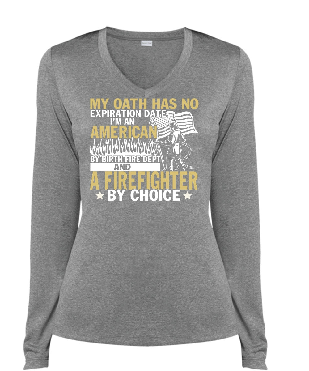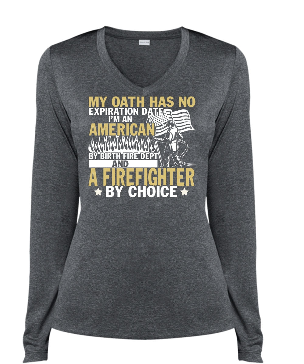 A Firefighter By Choice T Shirt, I'm An American T Shirt, Cool Shirt (Ladies LS Heather V-Neck)