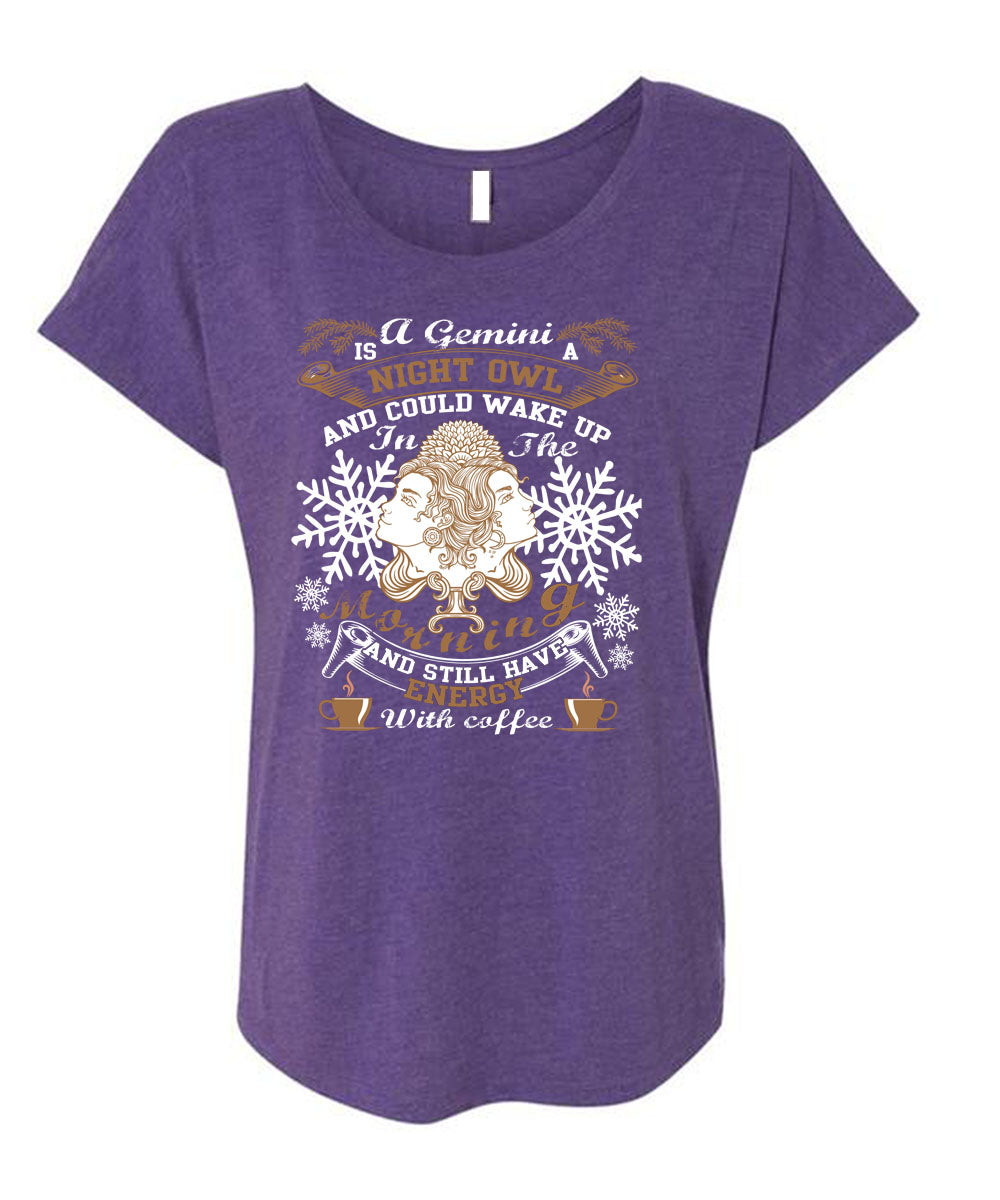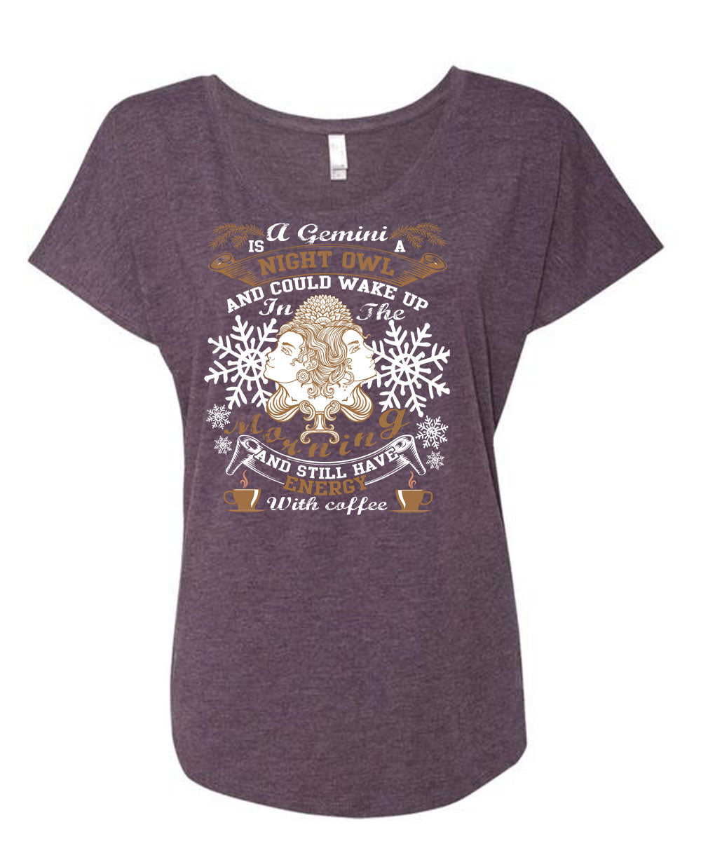 A Gemini Is A Night Owl T Shirt, Energy With Coffee T Shirt, Cool Shirt (Ladies' Triblend Dolman Sleeve)