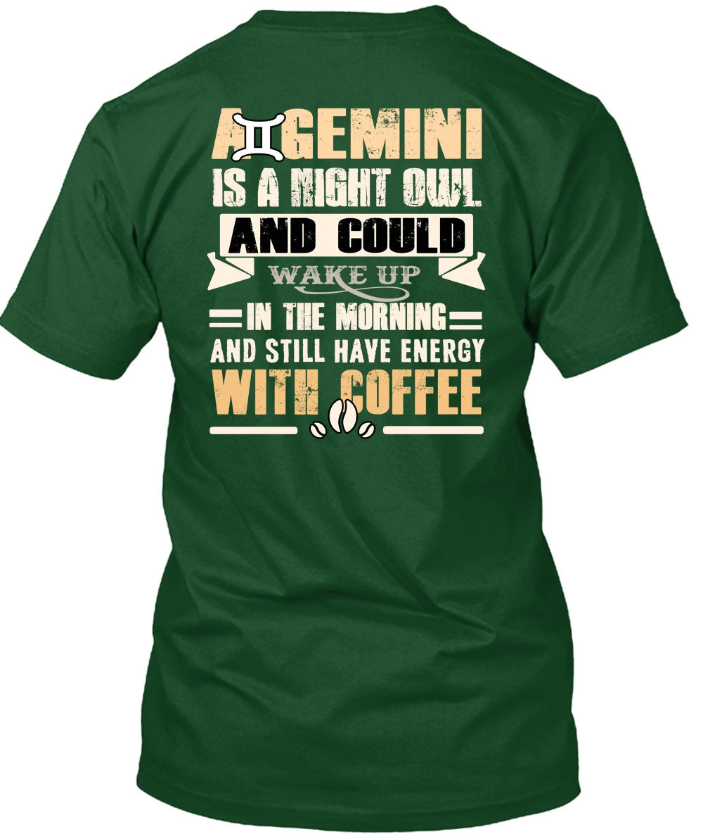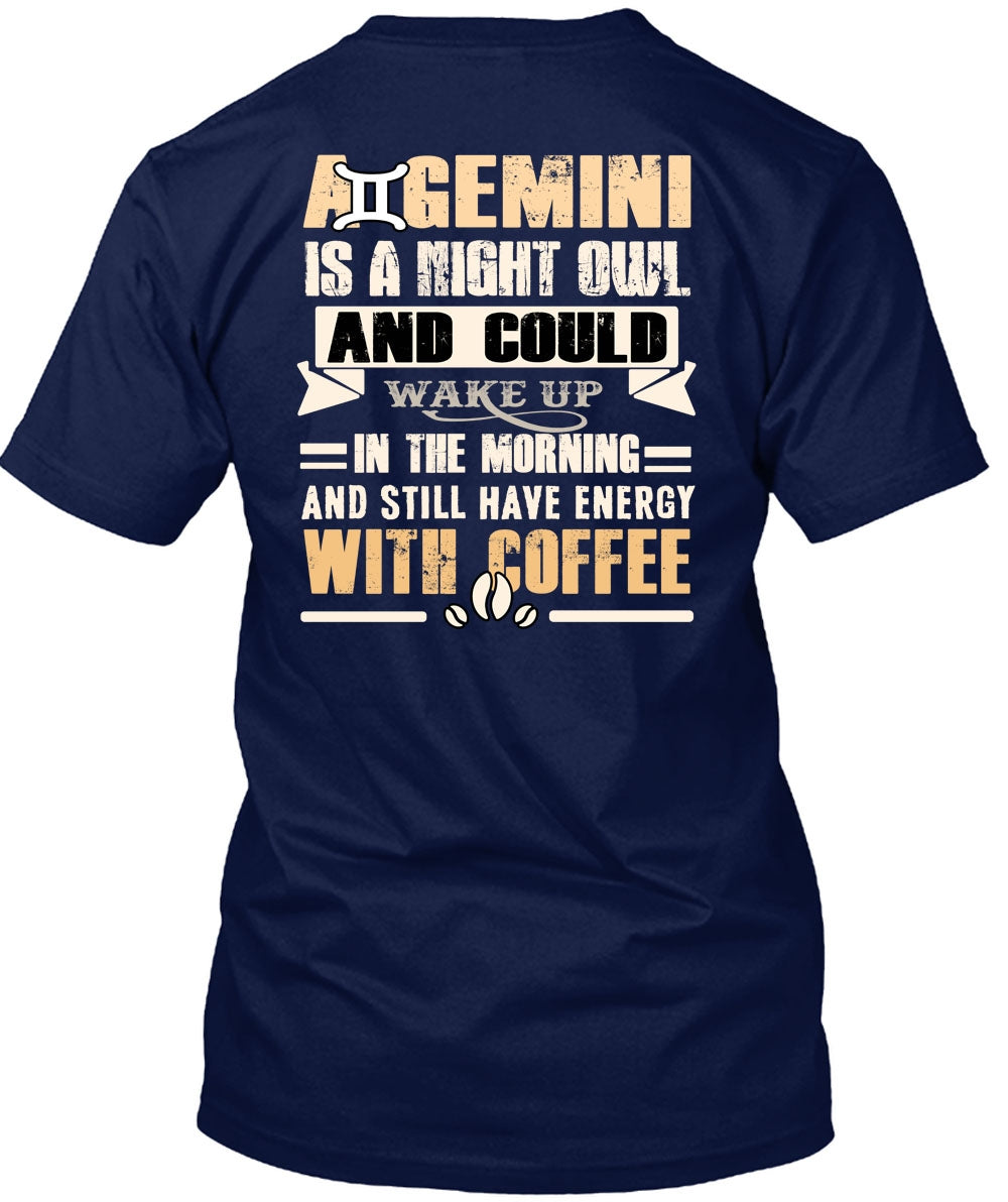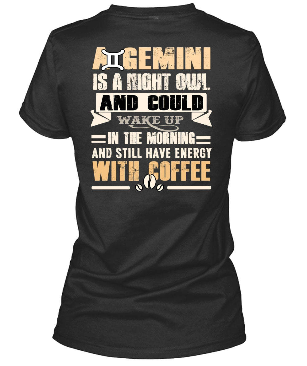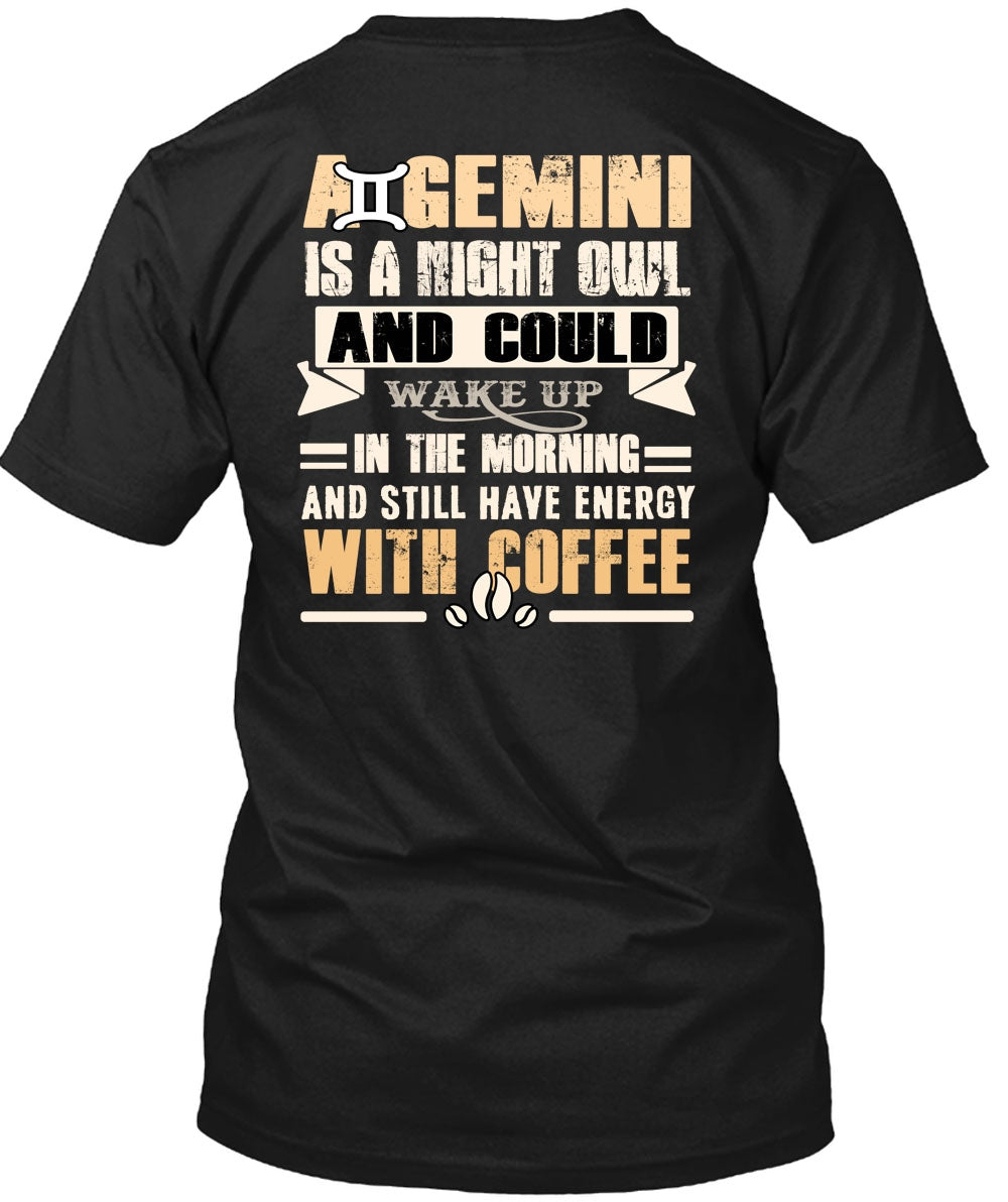 A Gemini Is Night Owl T Shirt, Energy With Coffee T Shirt