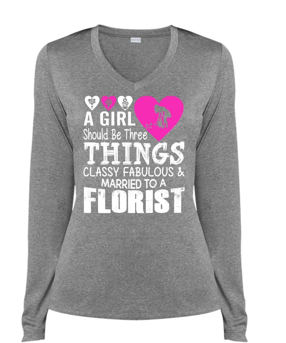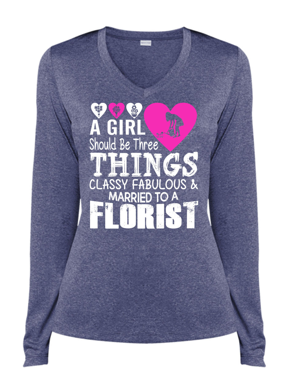 A Girl Should Be Three Things Classy Fabulous T Shirt, Married To A Florist T Shirt, Cool Shirt (Ladies LS Heather V-Neck)