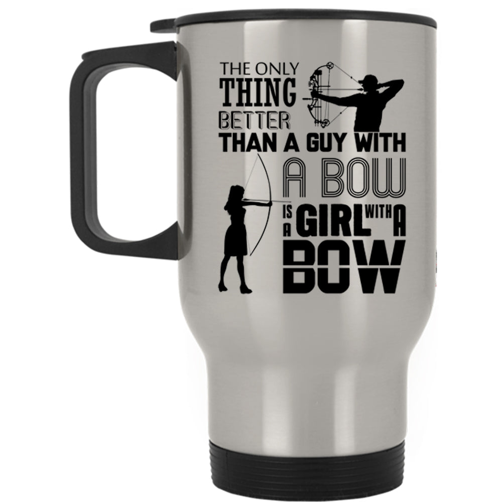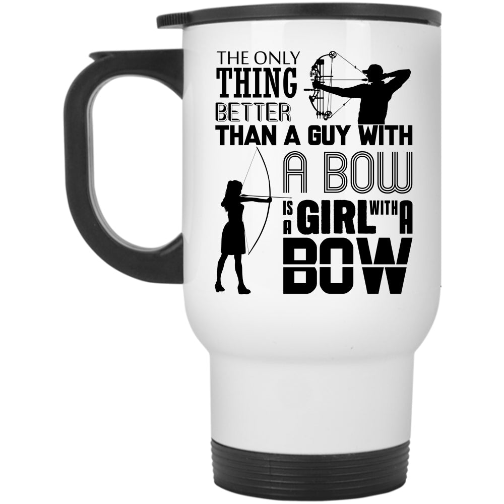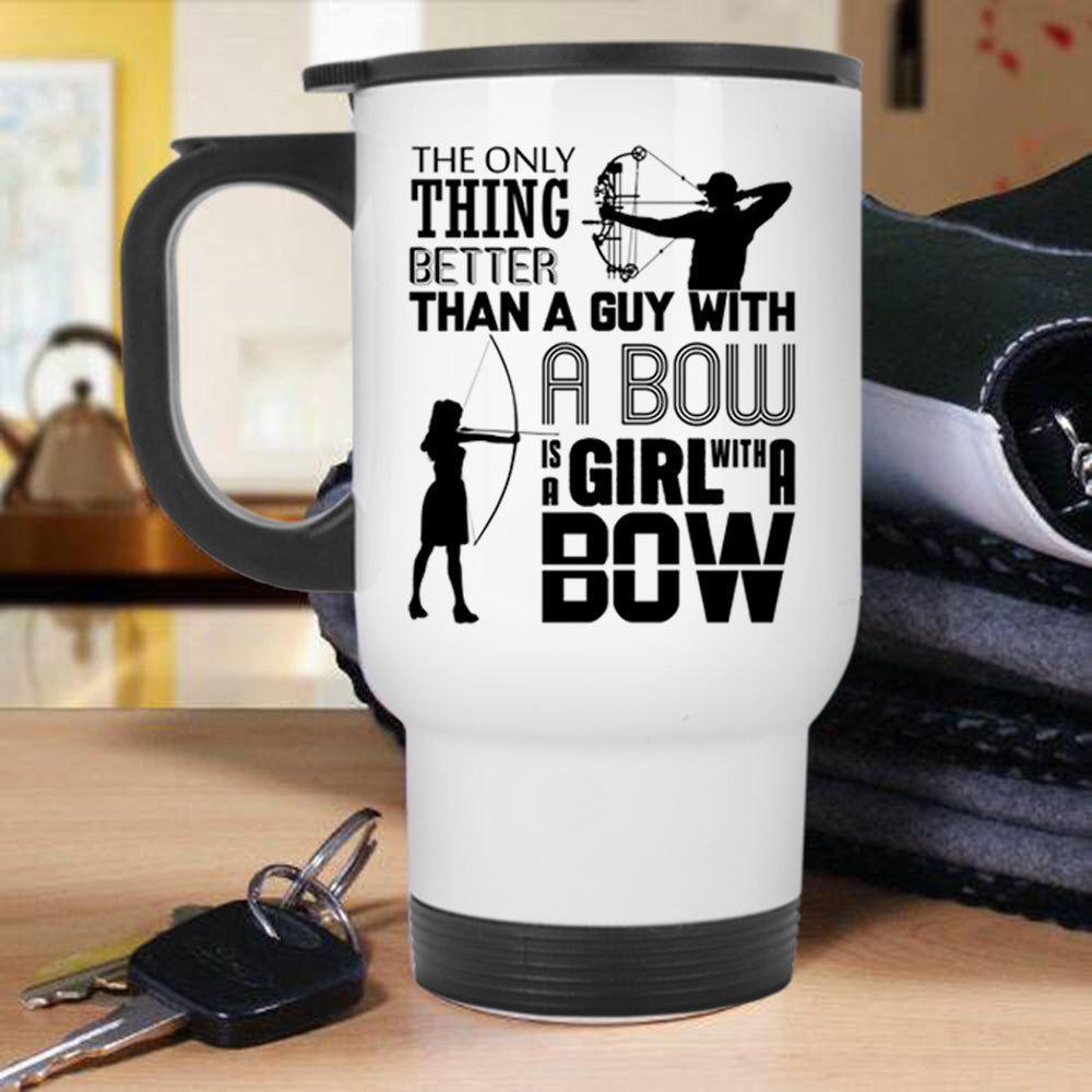 A Girl With A Bow Travel Mug, Guy With A Bow Mug