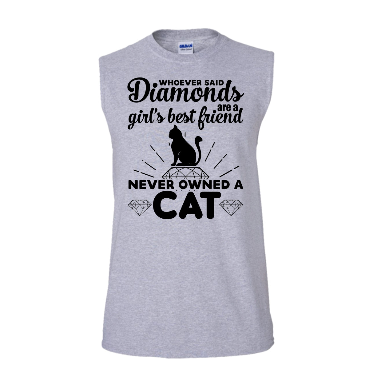 A Girl's Best Friend Never Owed A Cat Shirt, I Love My Cat Shirt (Men's Cotton Sleeveless)