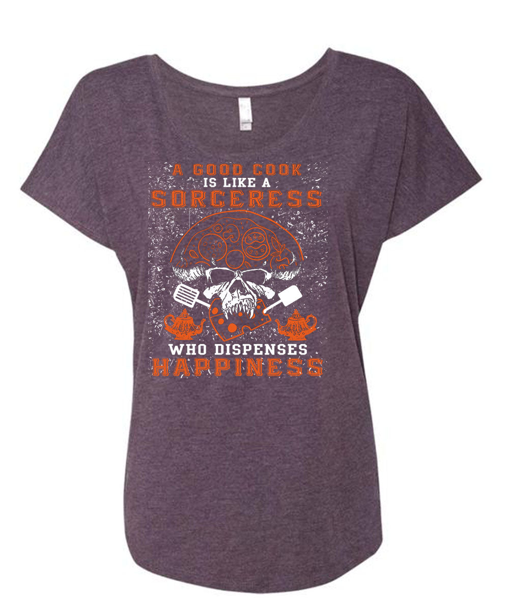 A Good Cook Is Like A Sorceress T Shirt, Who Dispenses Happiness T Shirt, Cool Shirt (Ladies' Triblend Dolman Sleeve)