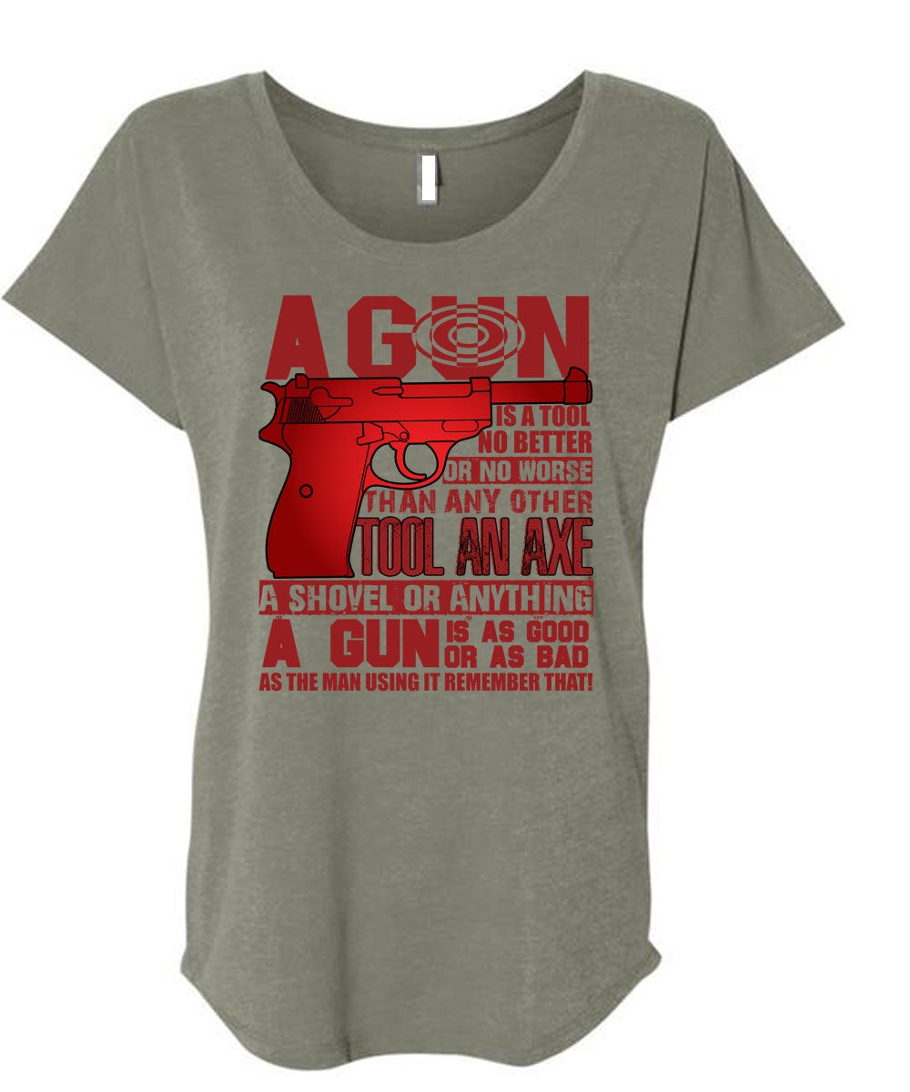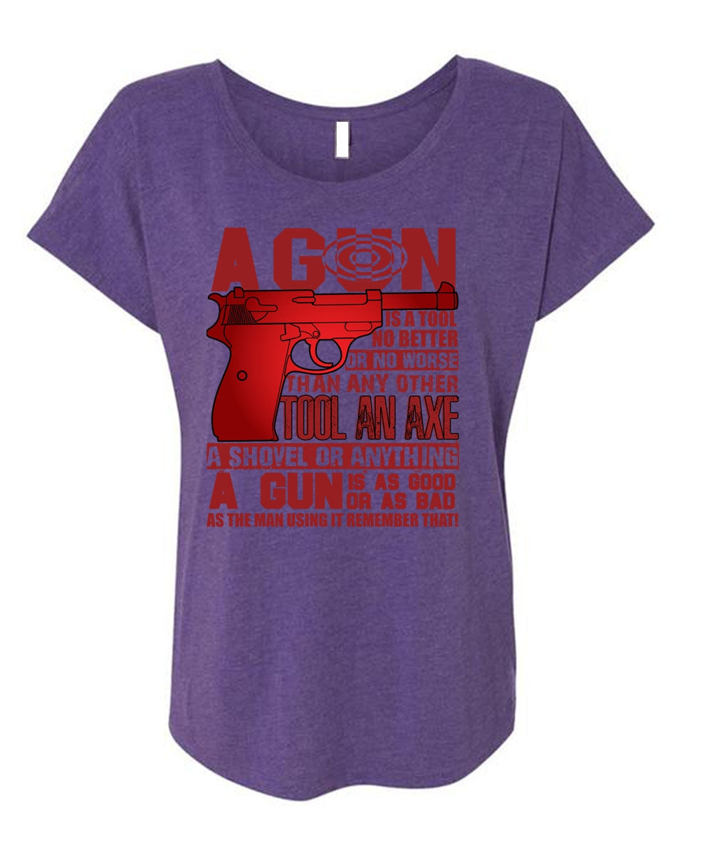 A Gun Is A Tool T Shirt, Being A Veteran T Shirt, Cool Shirt (Ladies' Triblend Dolman Sleeve)