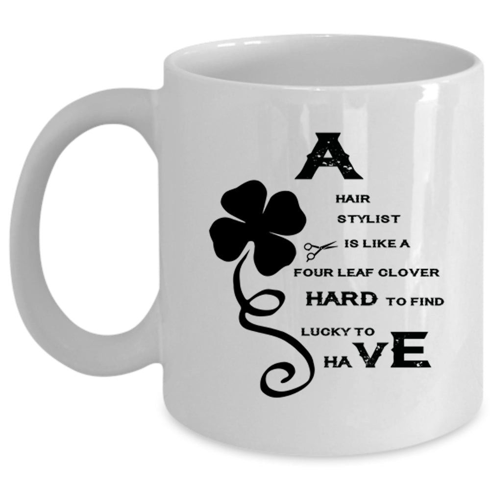 A Hair Stylist Is Like A Four Leaf Clover Mug, Lucky To Have Cup (Coffee Mug - White)