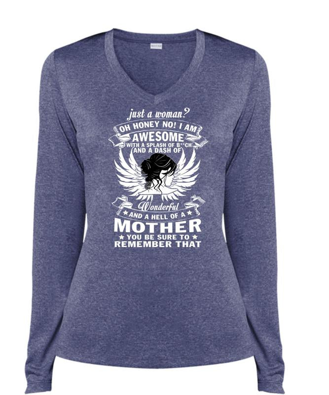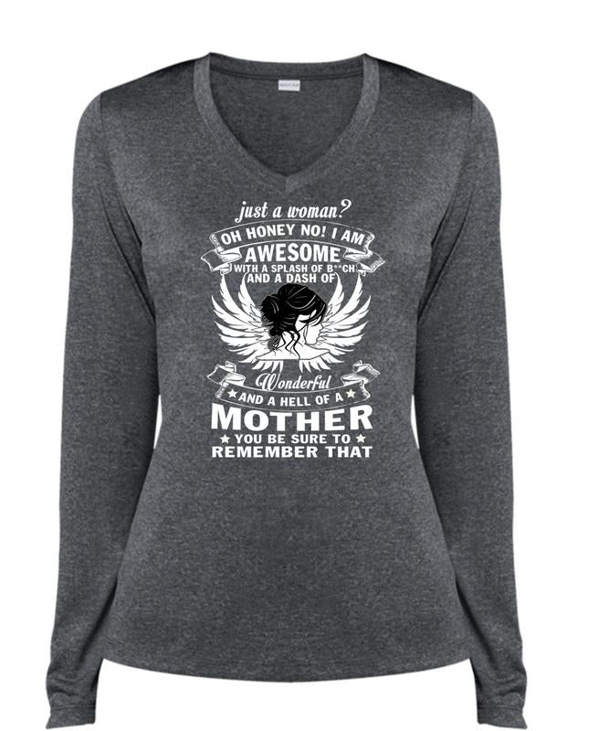 A Hell Of A Mother T Shirt, Being A Mama T Shirt, Cool Shirt (Ladies LS Heather V-Neck)