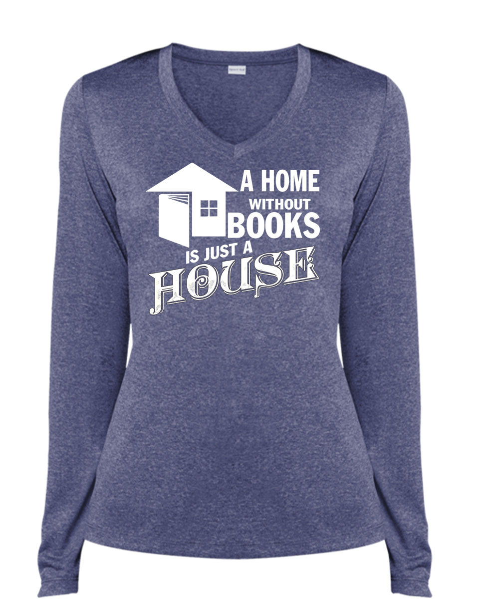 A Home Without Books Is Just A House T Shirt, Being A Reader T Shirt, Cool Shirt (Ladies LS Heather V-Neck)