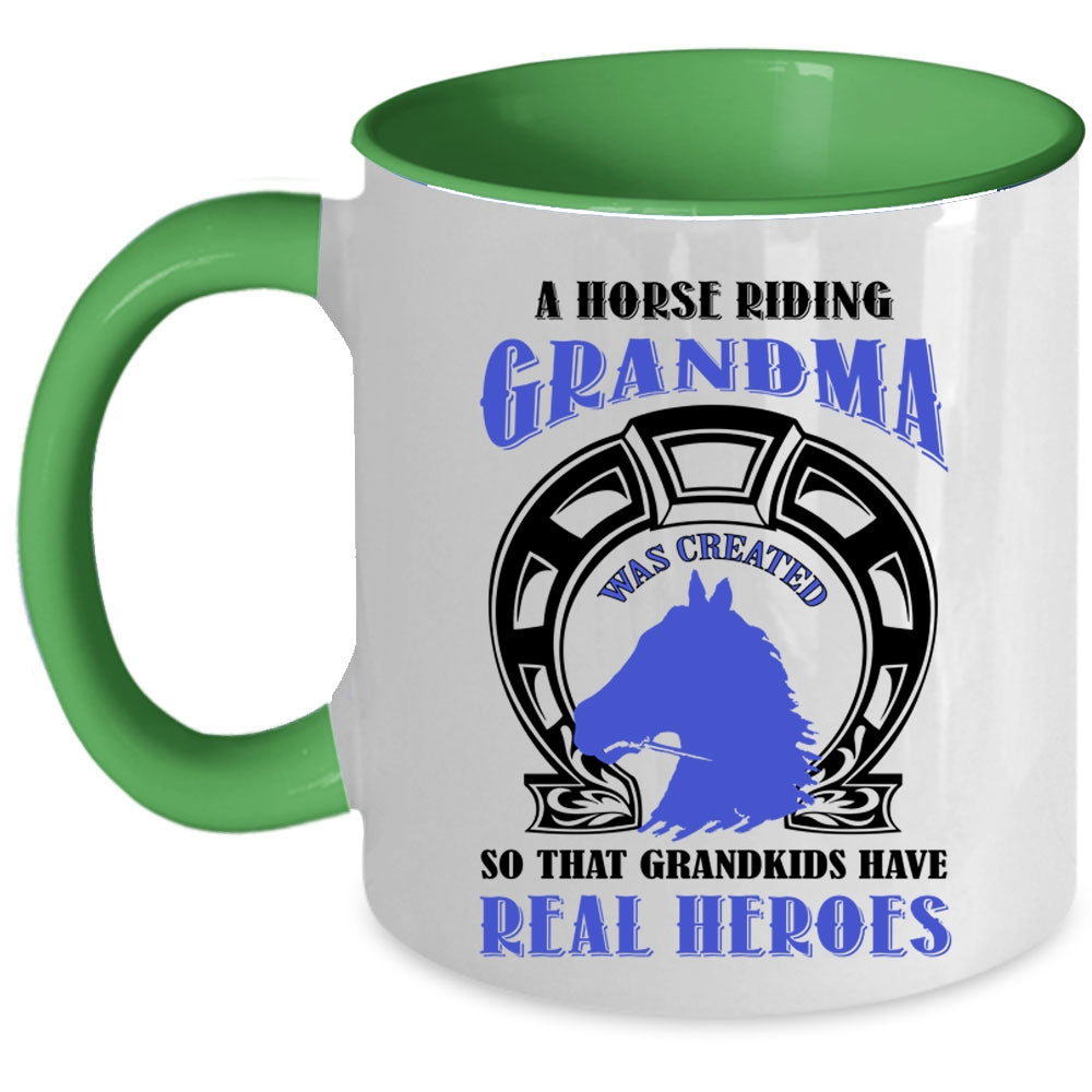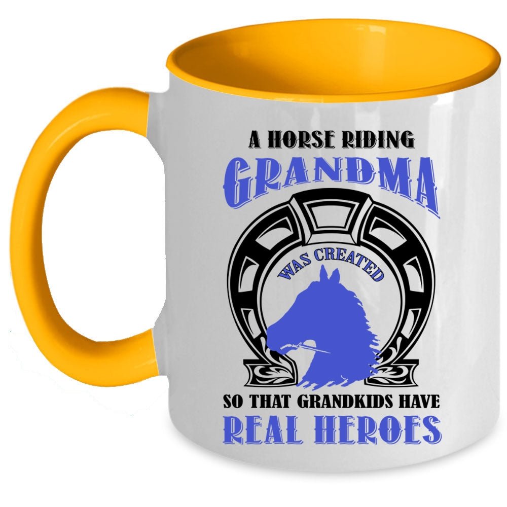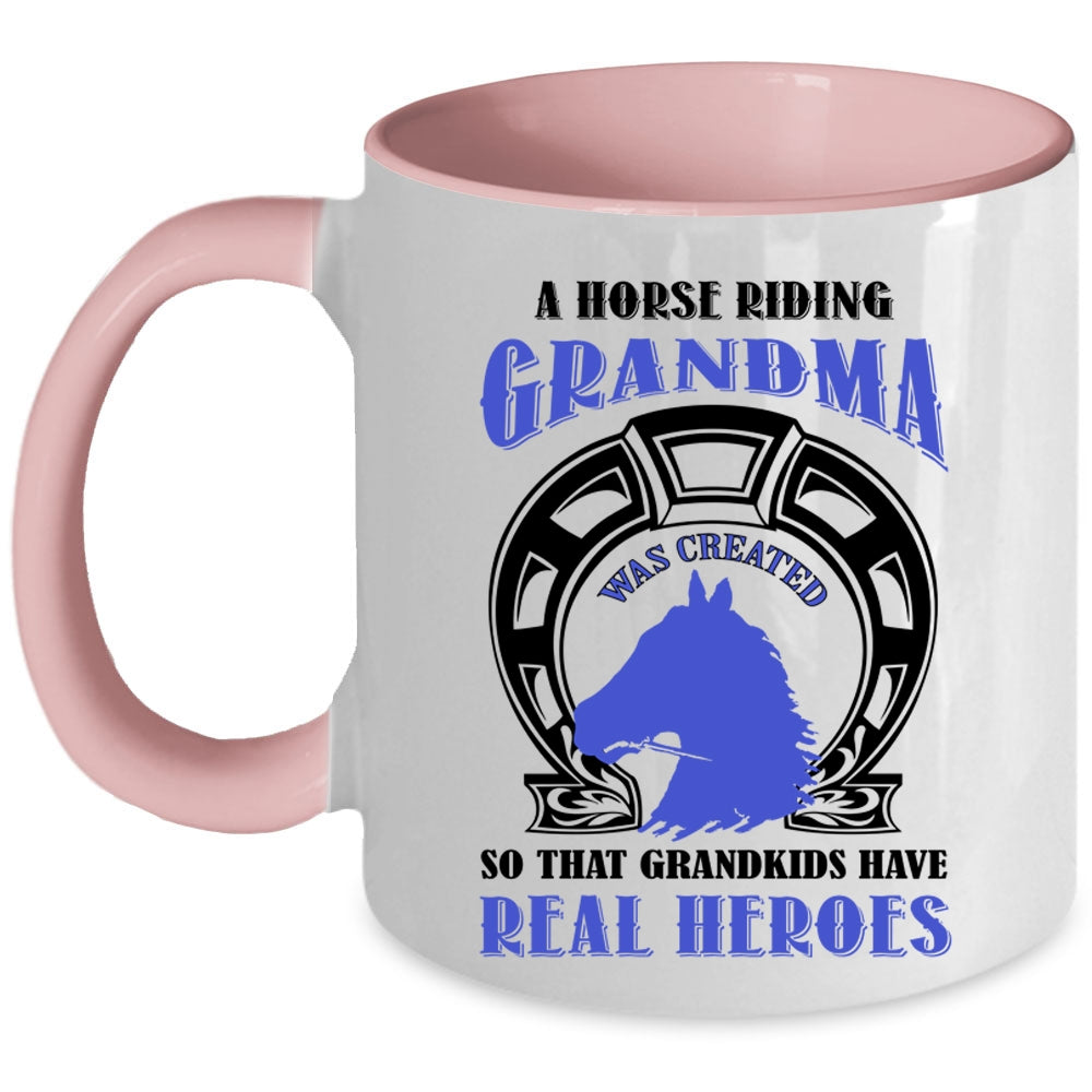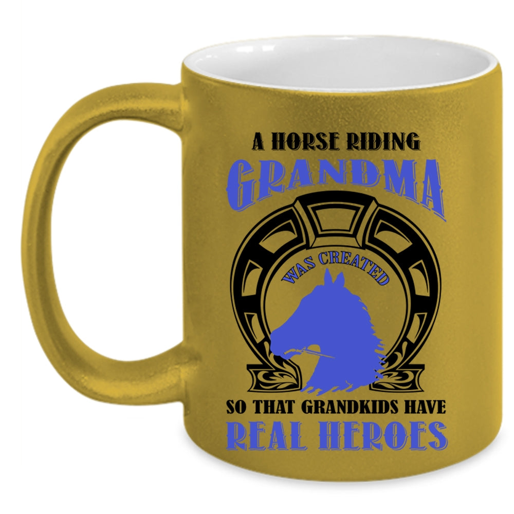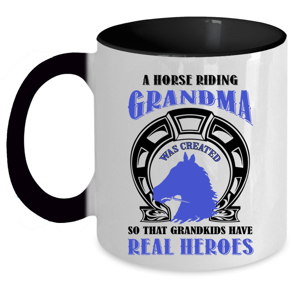 A Horse Riding Grandma Cup, Grandma And Grandkids Mug
