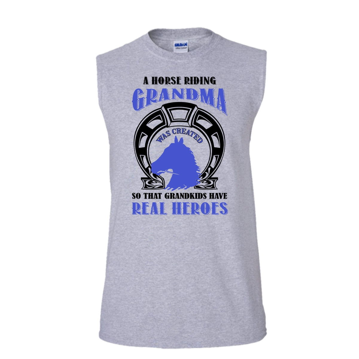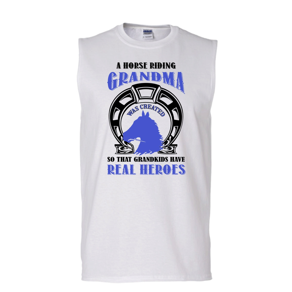 A Horse Riding Grandma Was Created Shirt, So That Grandkids Have Real Heroes Shirt (Men's Cotton Sleeveless)