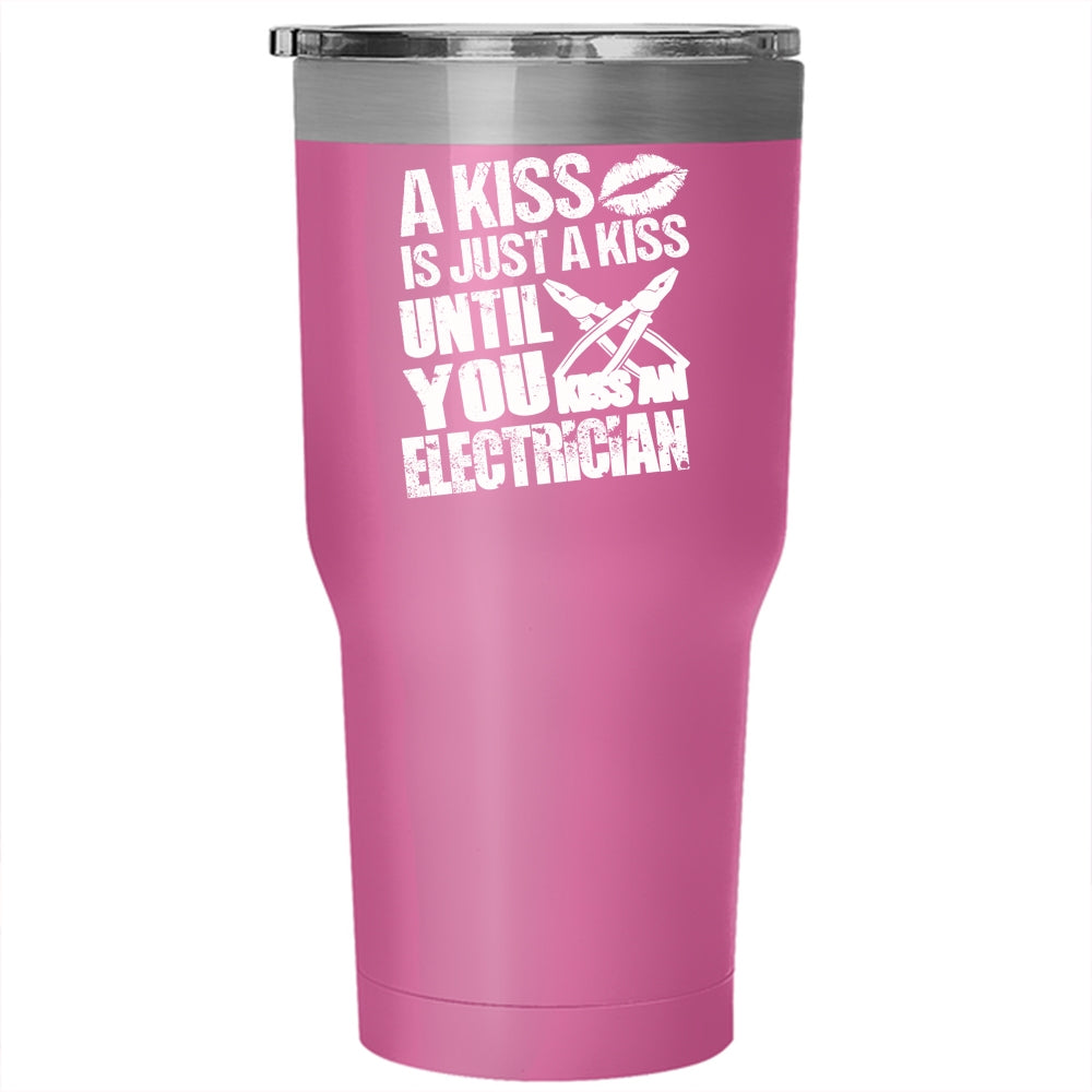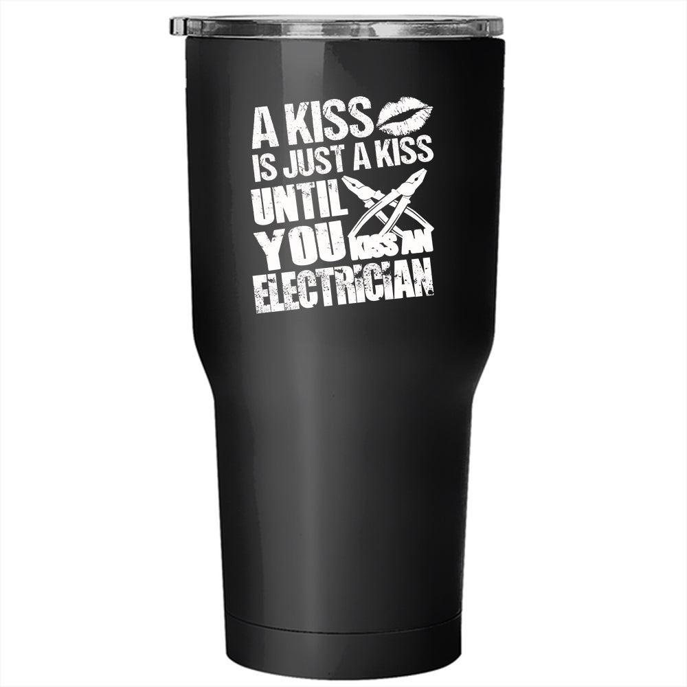 A Kiss Is Just A Kiss Tumbler 30 oz Stainless Steel, Until You Kiss An Electrician Travel Mug