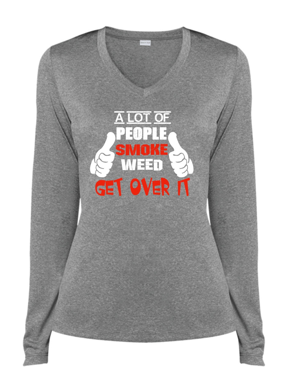 A Lot Of People Smoke Weed Get Over It T Shirt, My Life T Shirt (Ladies LS Heather V-Neck)