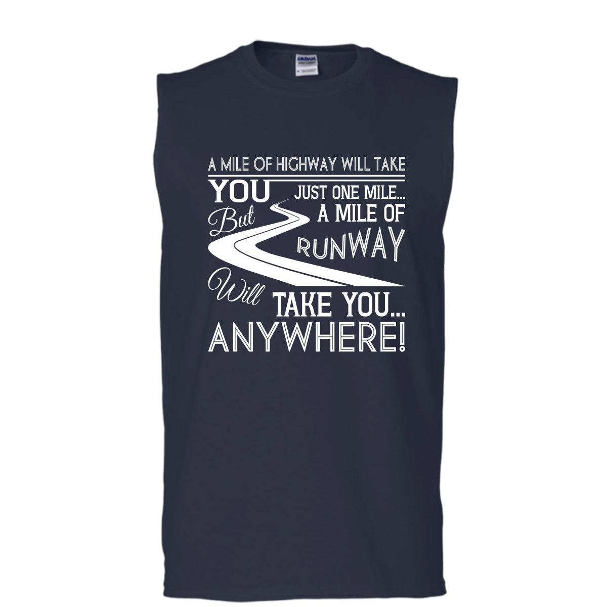 A Mile Of Highway Will Take Just One Mile Shirt, But Runway Will Take You Anywhere Shirt (Men's Cotton Sleeveless)