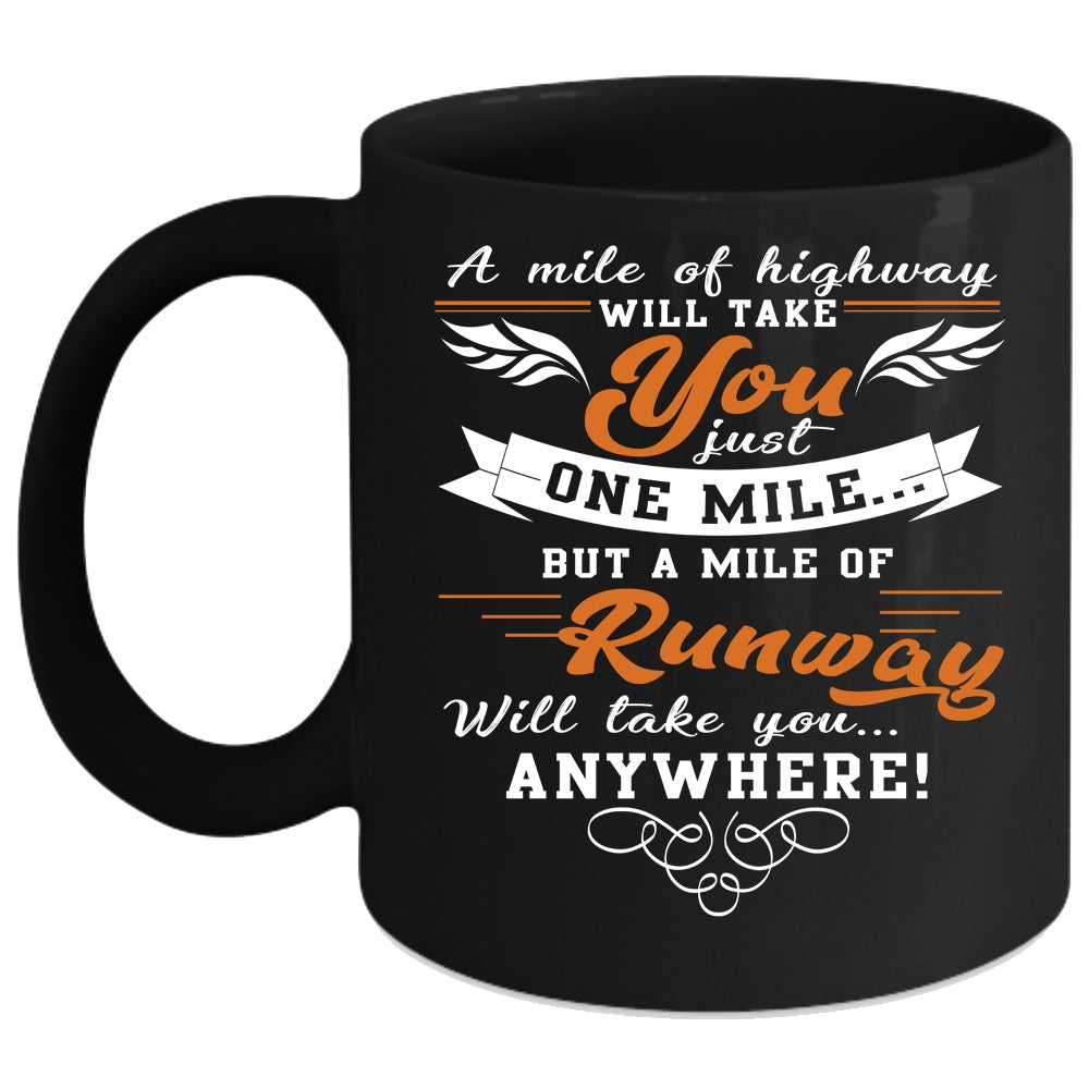 A Mile Of Highway Will Take You Coffee Mug, A Mile Of Runway Coffee Cup