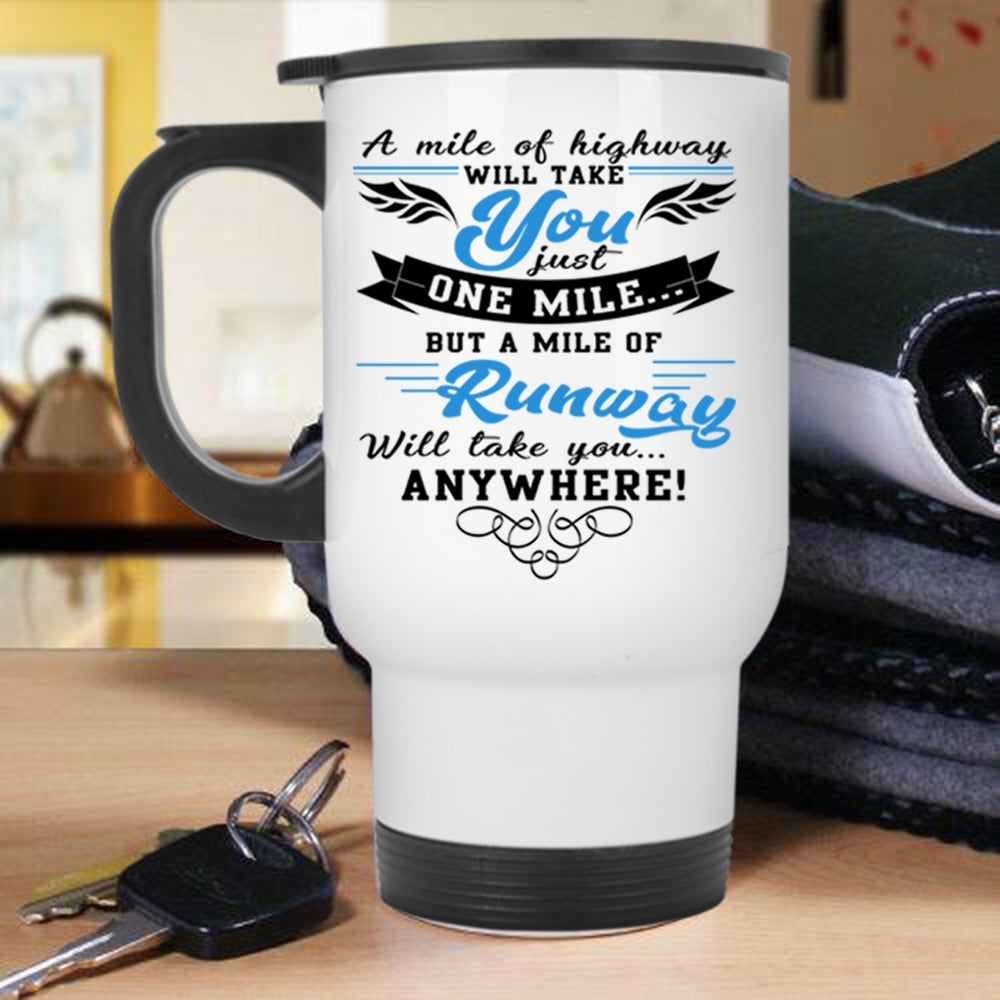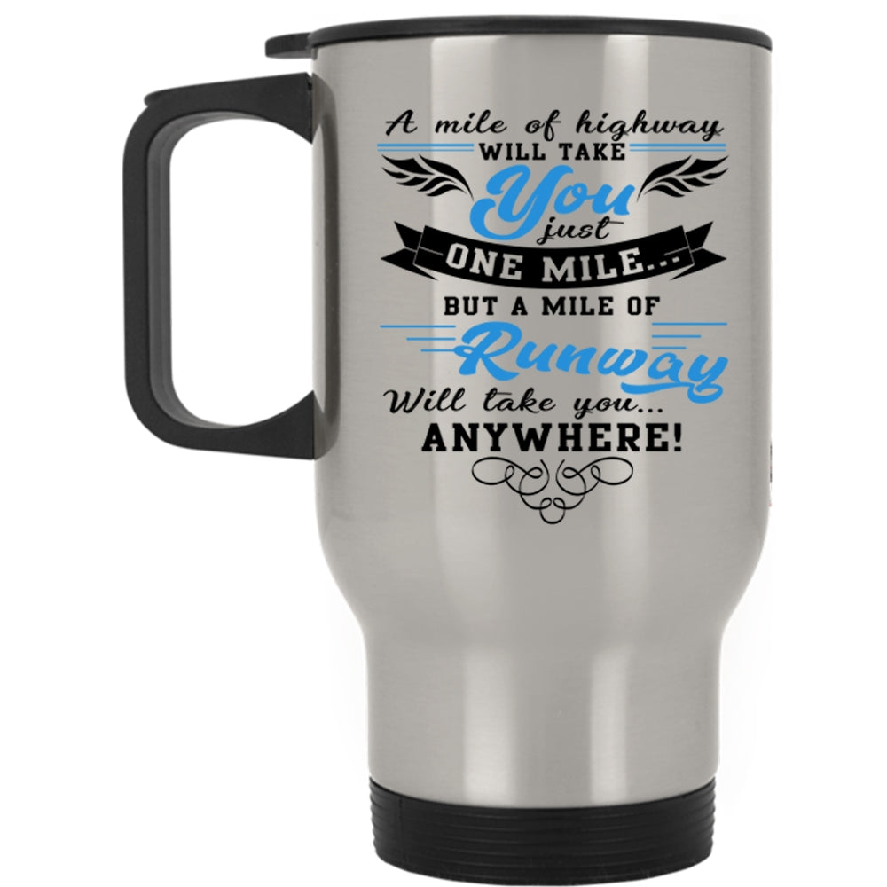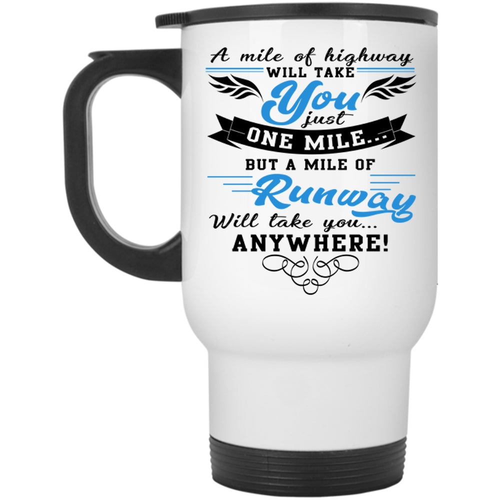 A Mile Of Runway Travel Mug, A Mile Of Highway Will Take You Mug