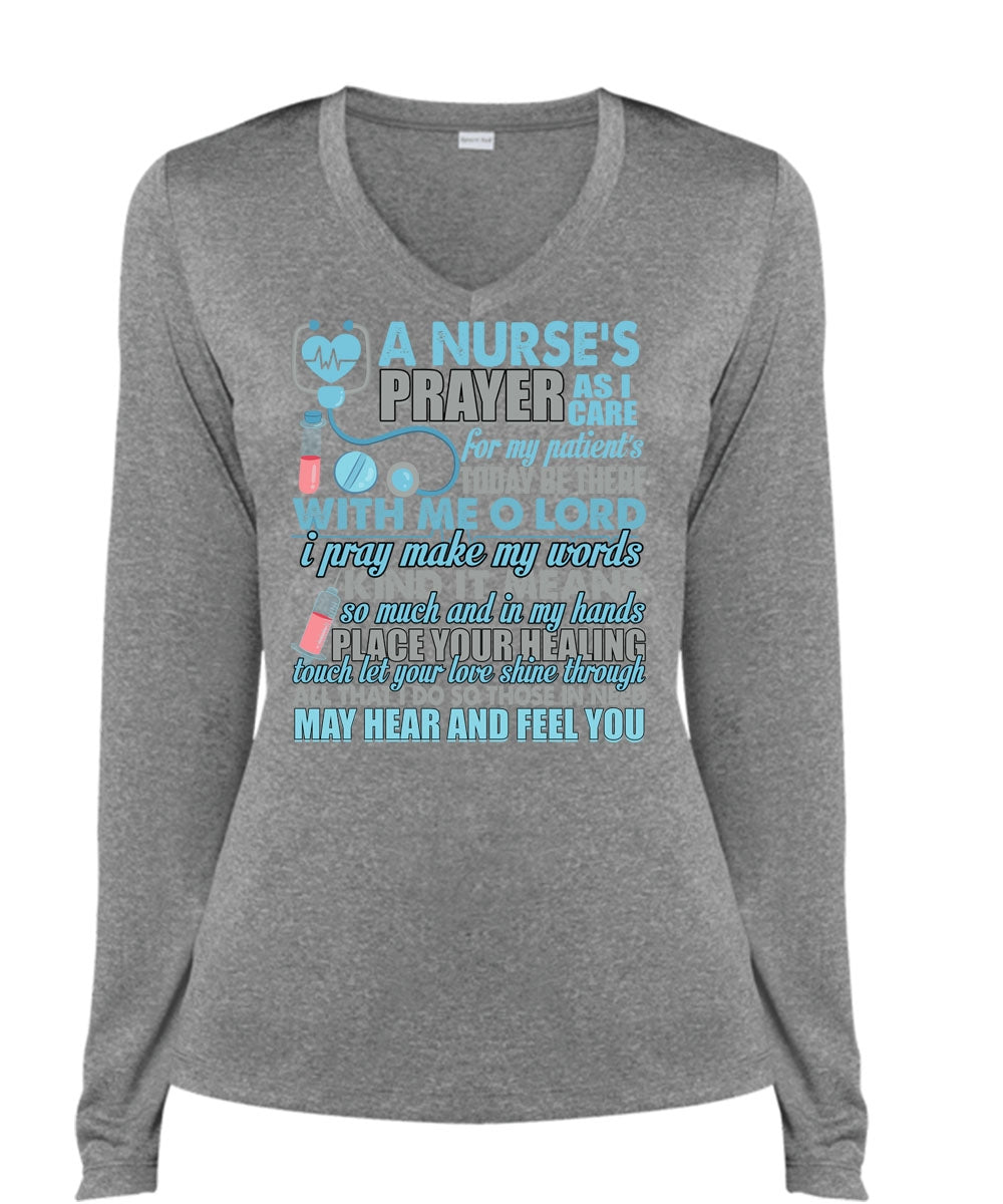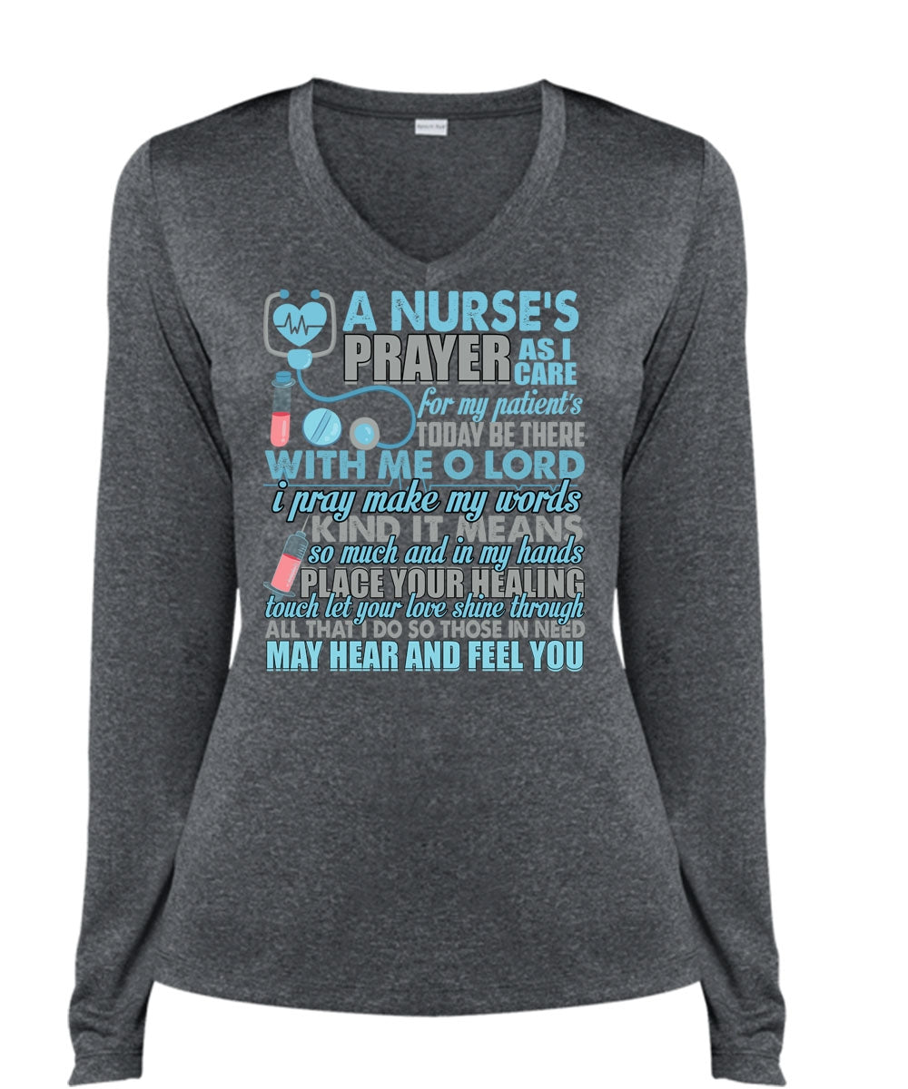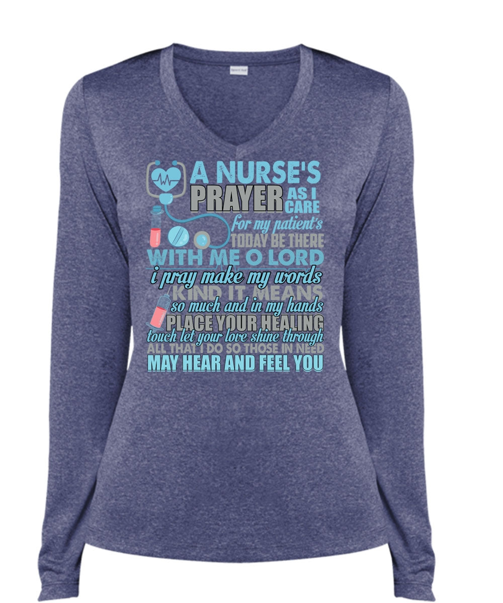 A Nurse's Prayer As Care T Shirt, I Pray Make My Words T Shirt, Cool Shirt (Ladies LS Heather V-Neck)