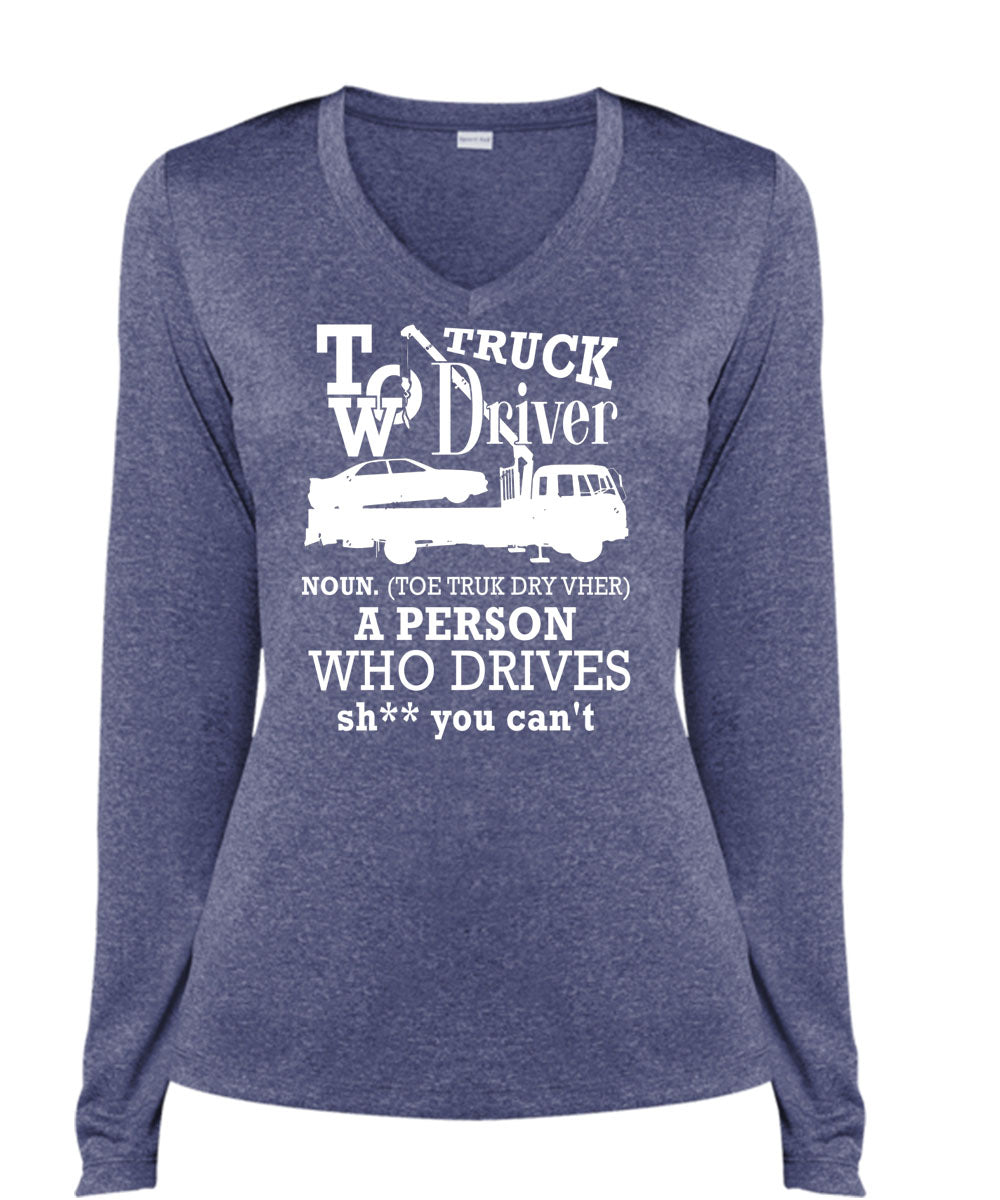 A Person Who Drives T Shirt, I Love Trucking T Shirt, Cool Shirt (Ladies LS Heather V-Neck)