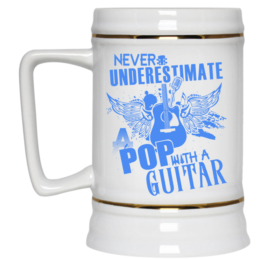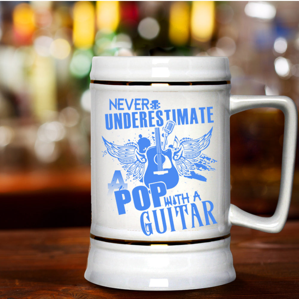 A Pop With A Guitar Beer Stein 22oz, Never Underestimate Beer Mug