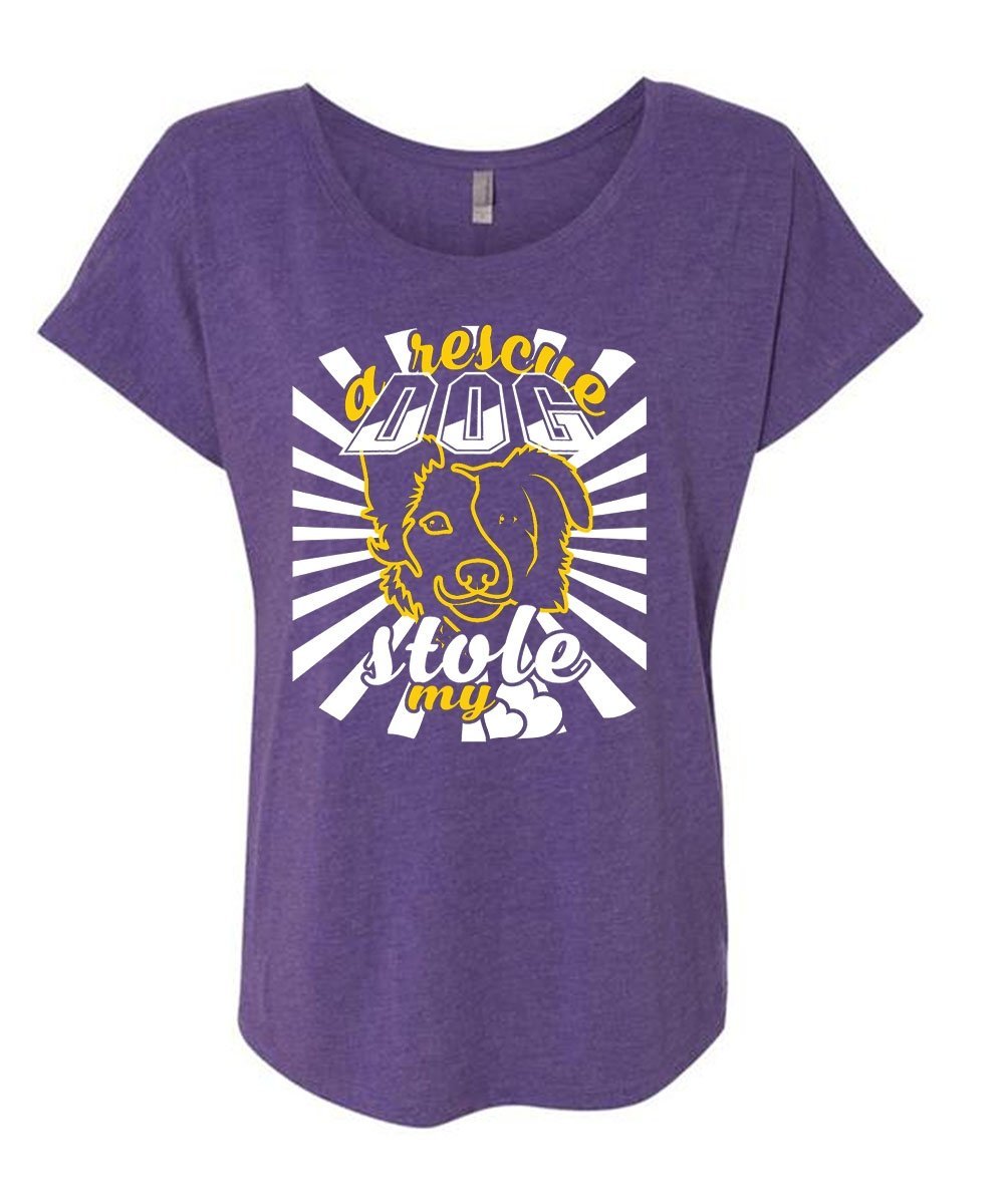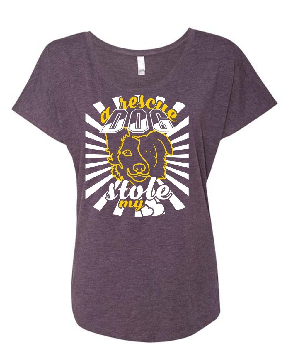 A Rescue Dog Stole My Heart T Shirt, Favorite T Shirt, I Love Dog T Shirt (Ladies' Triblend Dolman Sleeve)