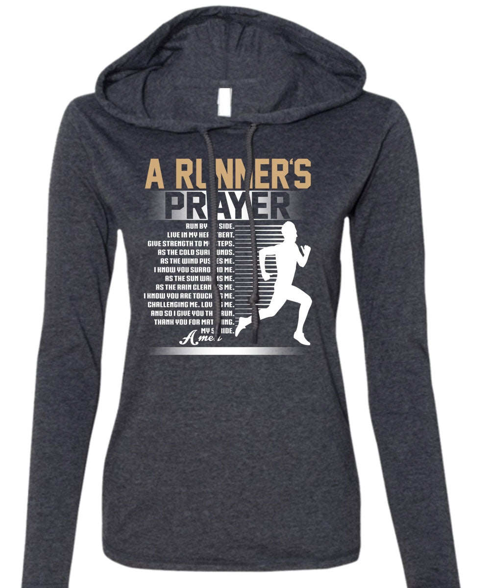 A Runner's Prayer T Shirt, Run By My Side T Shirt (Anvil Ladies Ringspun Hooded)