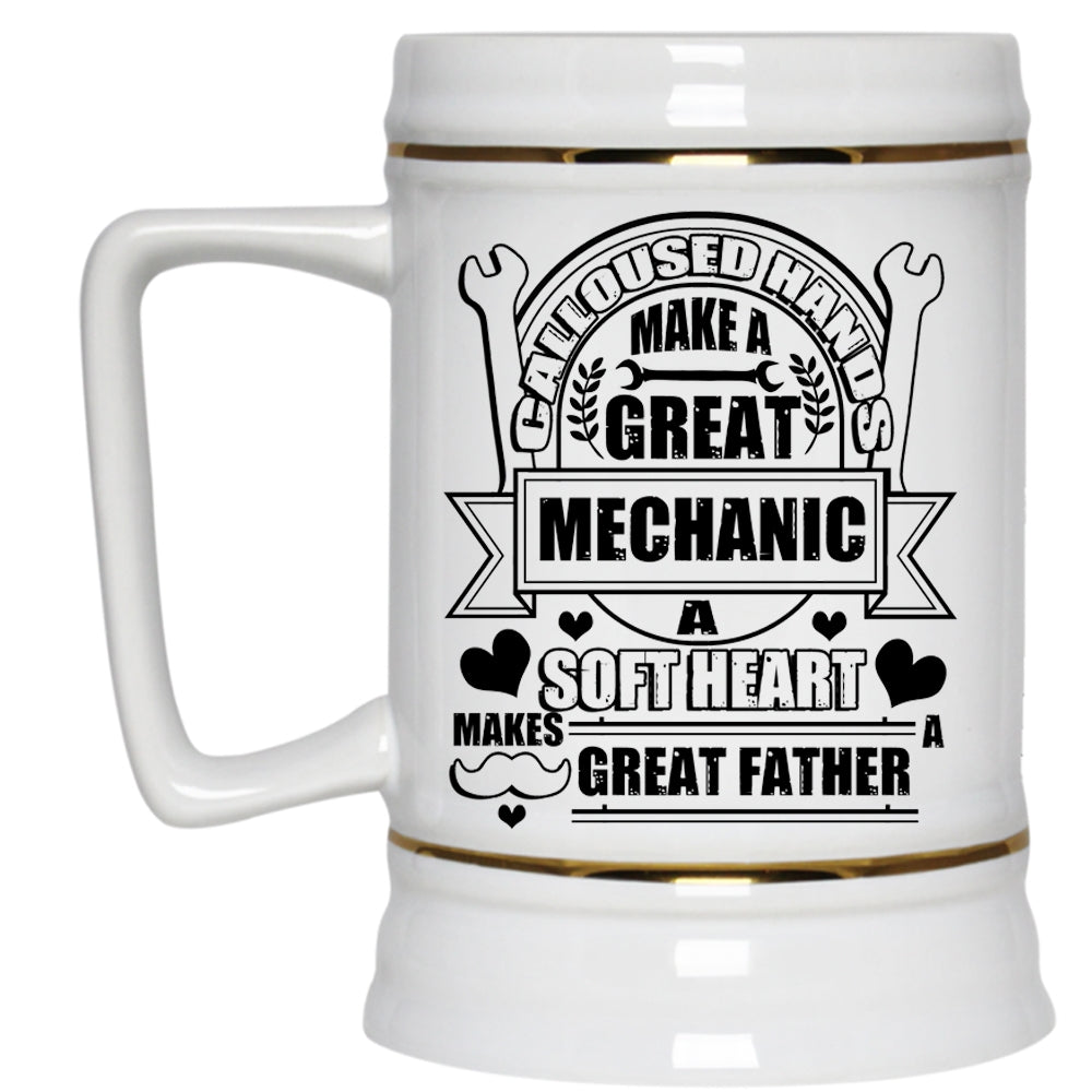 A Soft Hear Makes Great Father Beer Stein 22oz, Calloused Hands Make A Great Mechanic Beer Mug